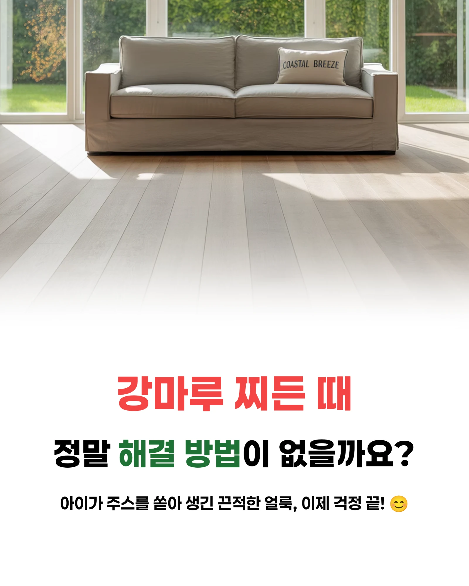 저도 얼마 전에 이사하면서 강마루를 새로 깔았는데, 아이가 주스를 쏟는 바람에 생긴 끈적한 얼룩 때문에 정말 속상했거든요. 인터넷에 나온 방법대로 무작정 닦았다가 오히려 코팅이 살짝 벗겨진 것 같아 마음이 아팠답니다.