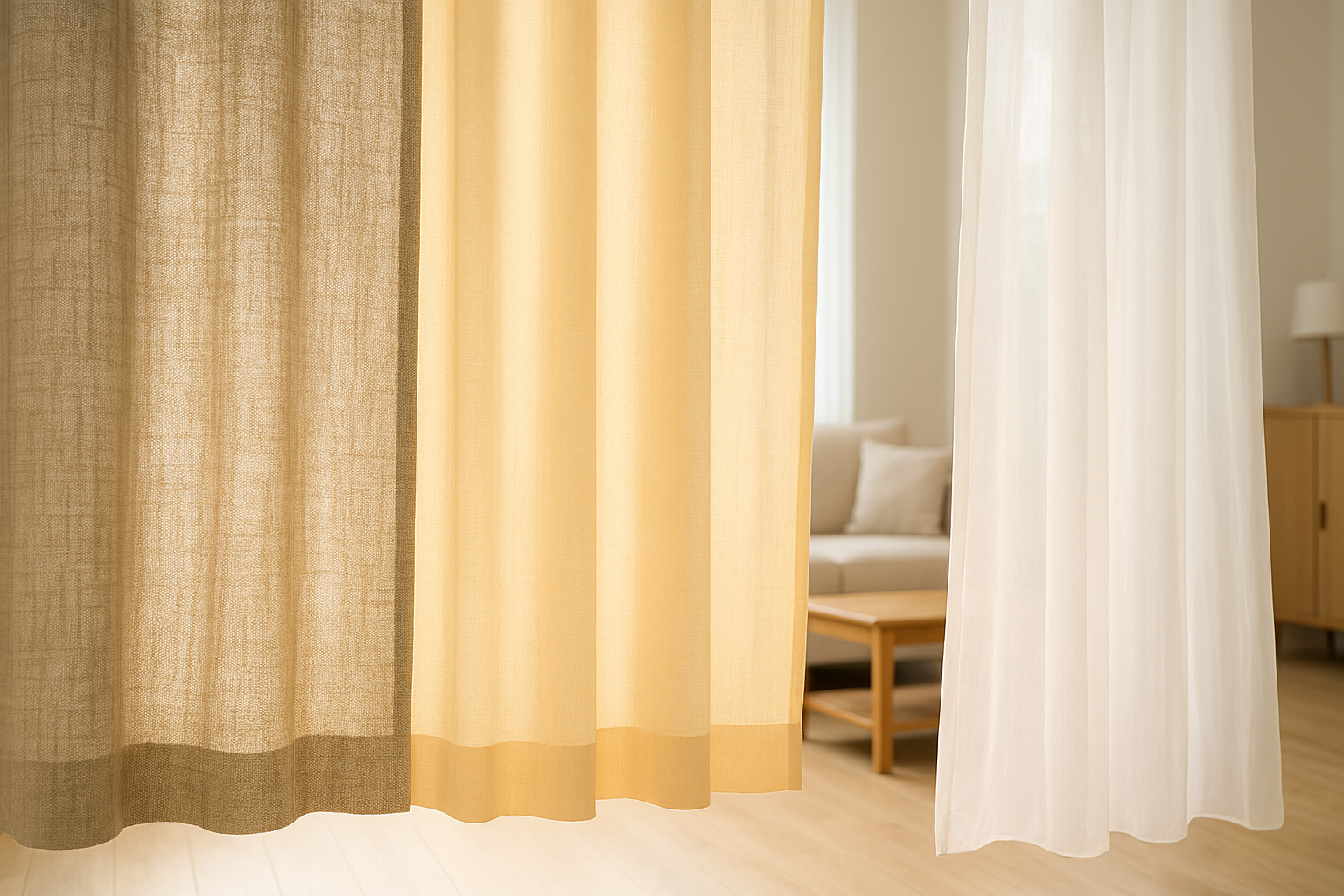 봄철 커튼 소재 비교 - 린넨, 면, 쉬폰 텍스처와 투명도 차이