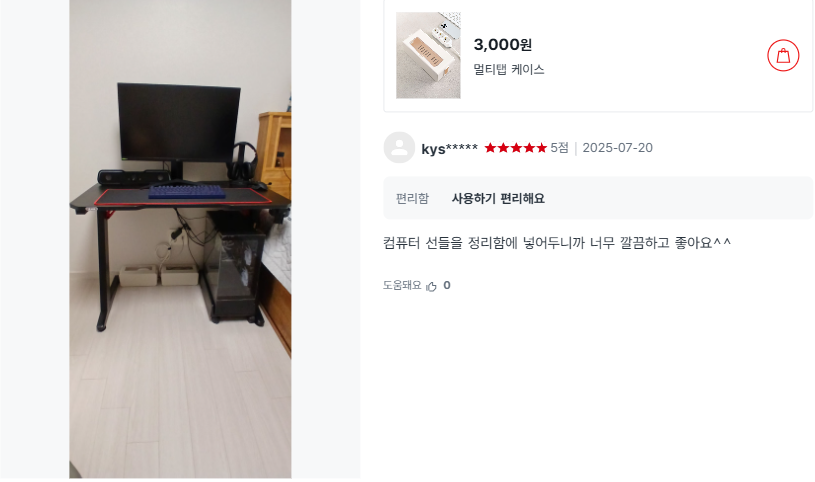 지저분한 멀티탭과 전선을 박스 안에 숨겨 깔끔함 확보