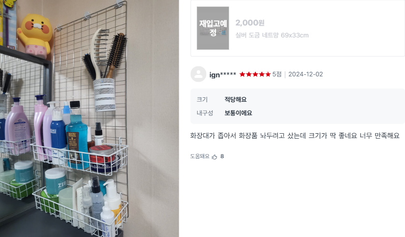 • 못 없이 꾸미는 나만의 갤러리, 네트망: 벽에 못을 박기 어렵다면 '네트망'이 정답입니다. 좋아하는 엽서, 액세서리, 작은 소품들을 걸어두면 훌륭한 인테리어 소품이자 실용적인 수납공간이 완성됩니다.