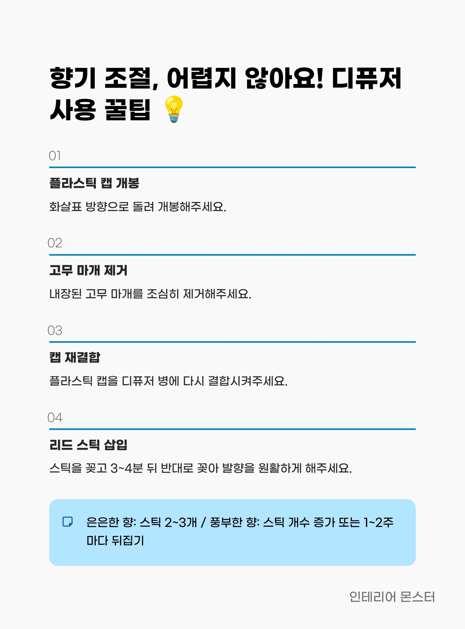 향기 조절, 어렵지 않아요! 디퓨저 사용 꿀팁 💡