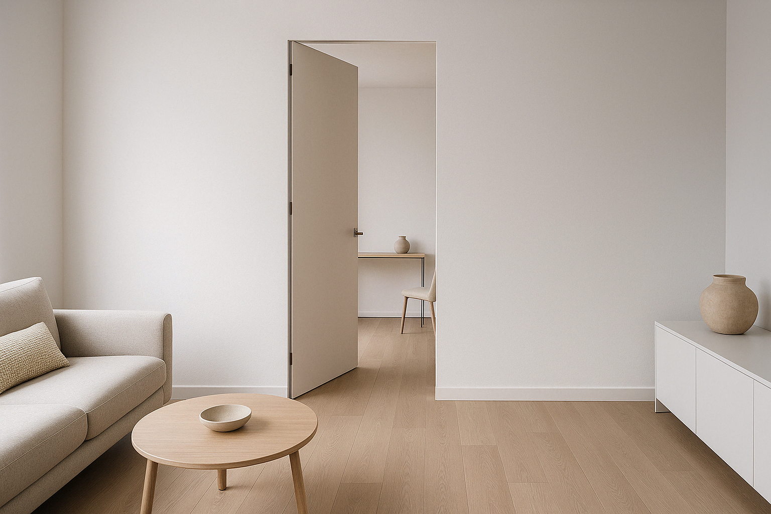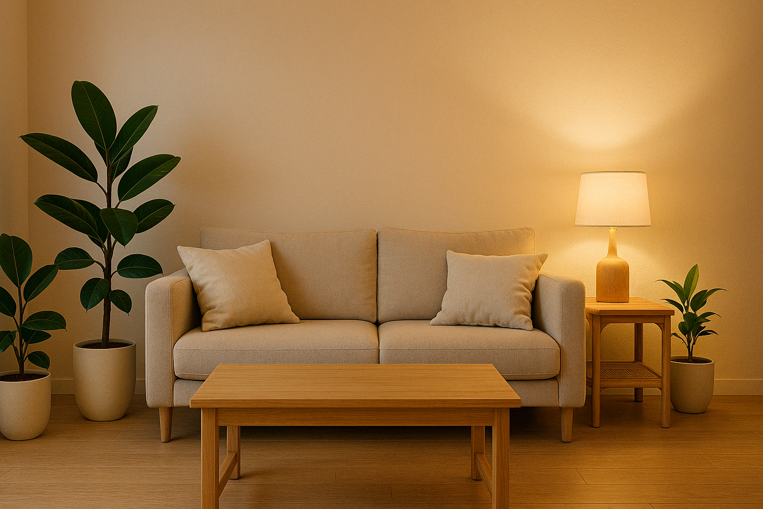 따뜻한 미니멀리즘을 구현한 아늑한 거실 - 자연 소재와 따뜻한 색상의 조화