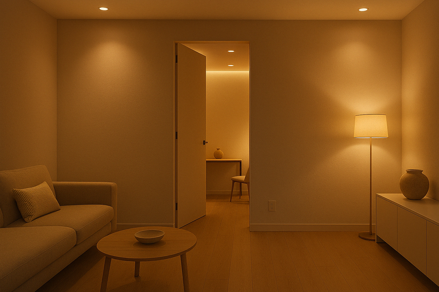 2025년 미니멀 인테리어 트렌드 색상과 조명 - 따뜻한 뉴트럴 컬러와 레이어드 조명