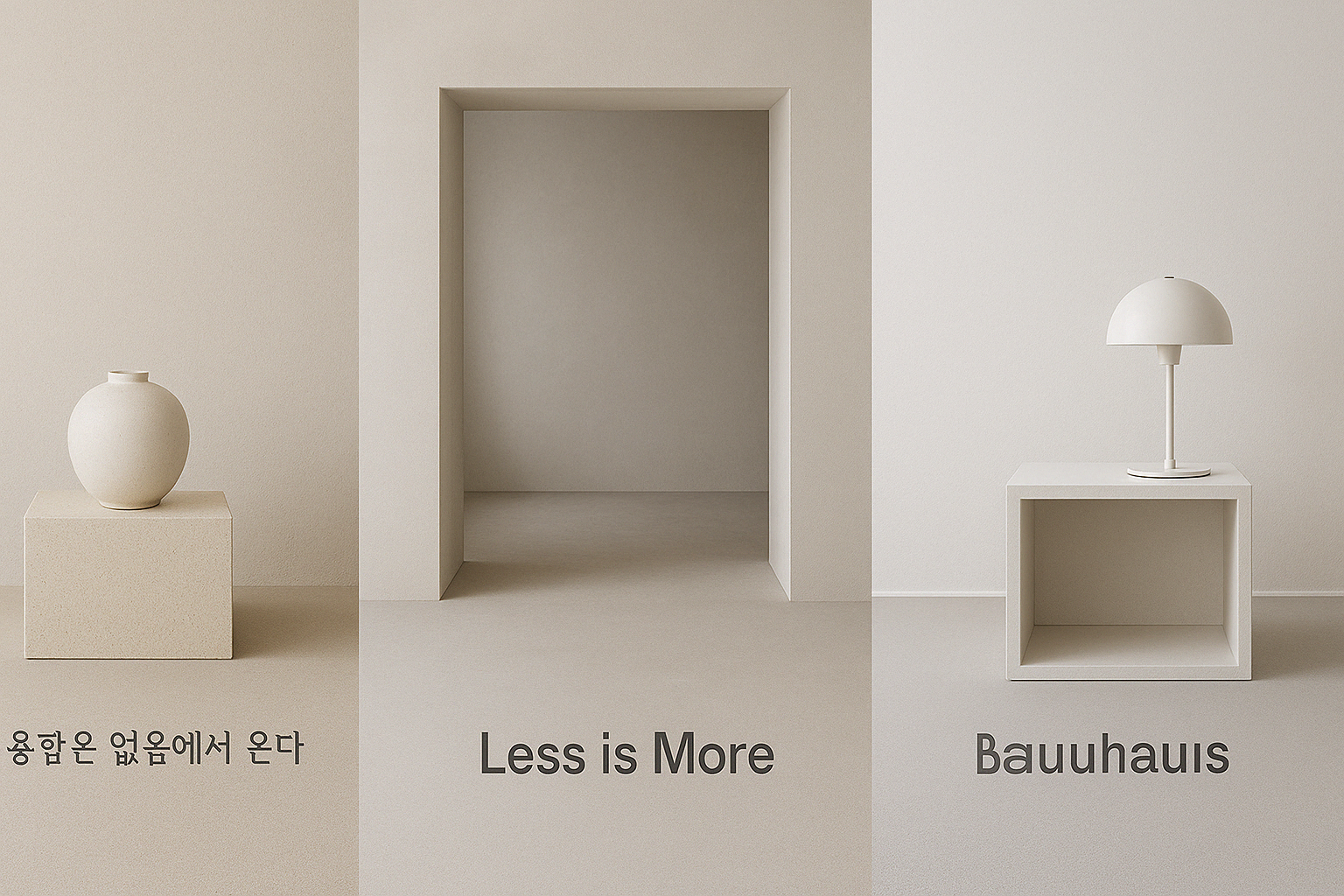 서양에서는 20세기 초 독일의 '바우하우스' 운동에서 시작된 "Less is More(적은 것이 더 많은 것이다)"라는 원칙이 현대 미니멀리즘의 뿌리가 됐어요. 기능에 충실하면서도 장식은 최소화하는 이 사상은 오늘날 애플 제품 디자인 같은 현대 미니멀리즘에도 큰 영향을 미쳤습니다.