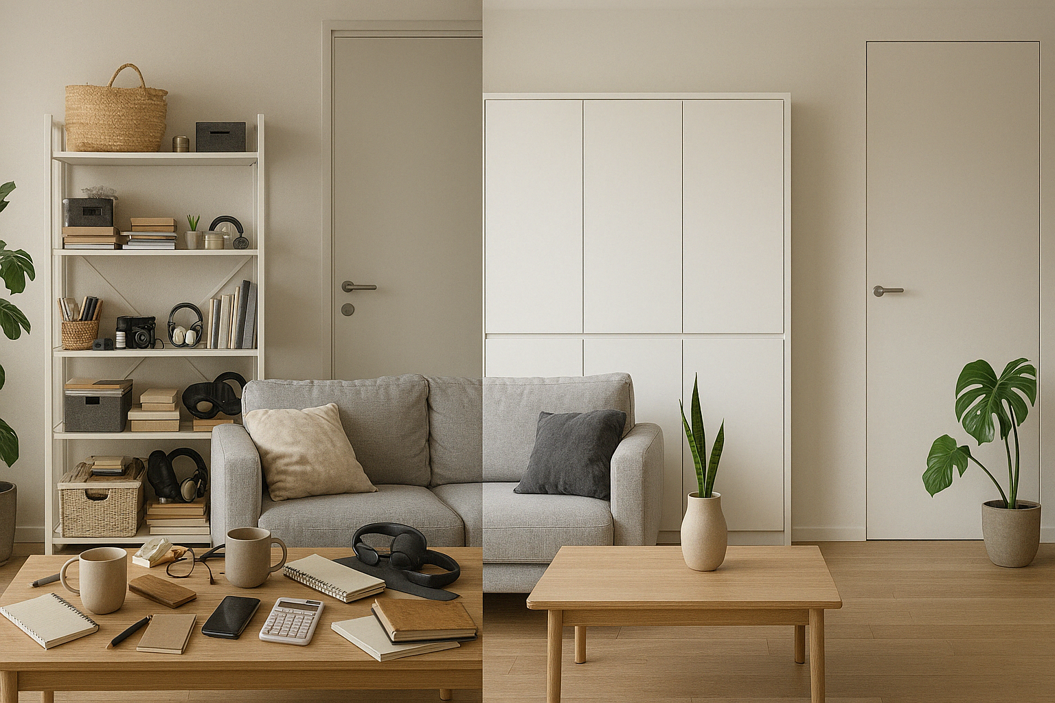 미니멀 인테리어 실천 전후 비교 - 물건 정리와 공간 확장의 효과