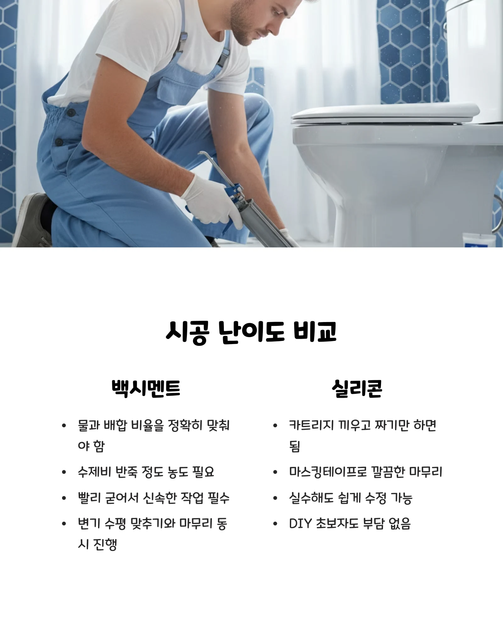 몇 달 전에도 같은 고민을 했던 기억이 나네요. 변기 주변이 또 벌어져서 화장실 냄새가 올라오는 게 신경 쓰였거든요. 이번엔 제대로 해결하고 싶어서 두 재료의 차이점을 꼼꼼히 알아봤어요.