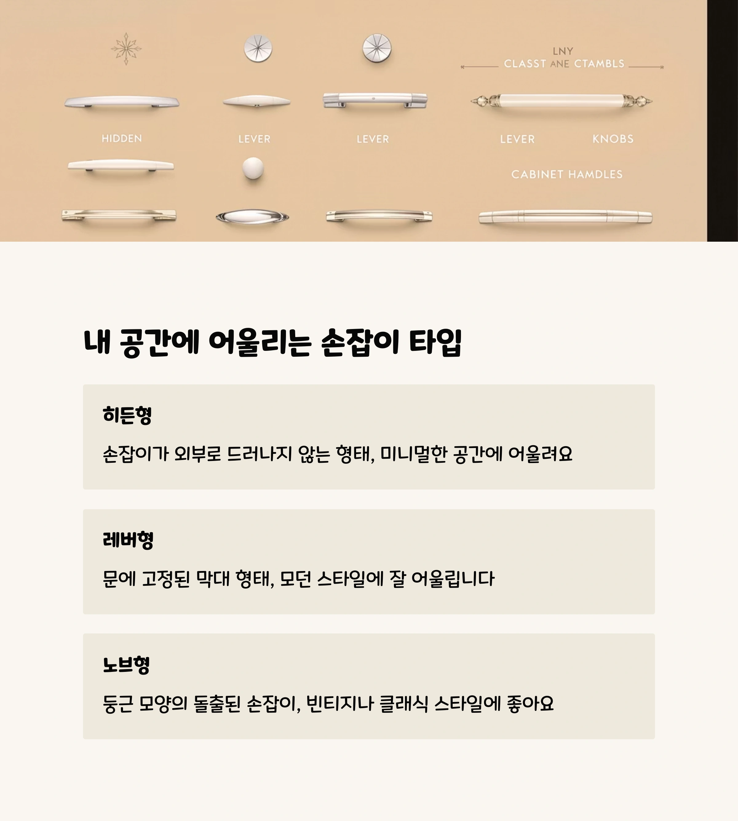 | 손잡이 유형 | 특징 | 어울리는 인테리어 |