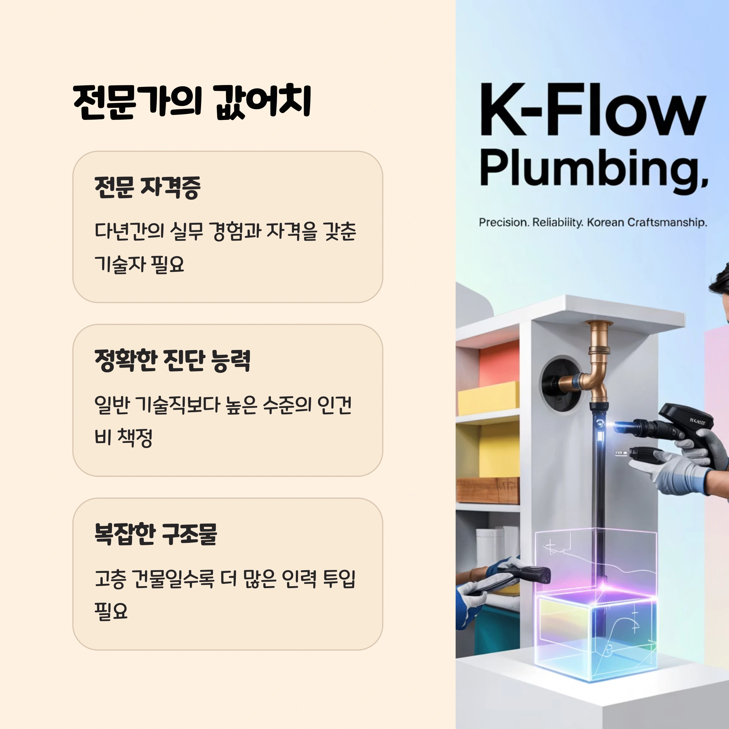 누수 탐지는 단순한 인력이 아닌, 전문 자격을 가진 기술자가 수행해야 합니다.