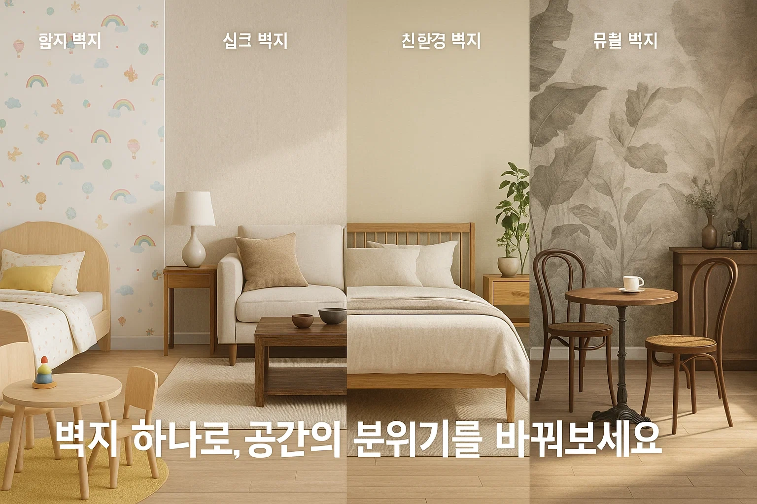 | 합지 벽지 | 150만원 ~ 180만원 | 가장 경제적인 선택 |