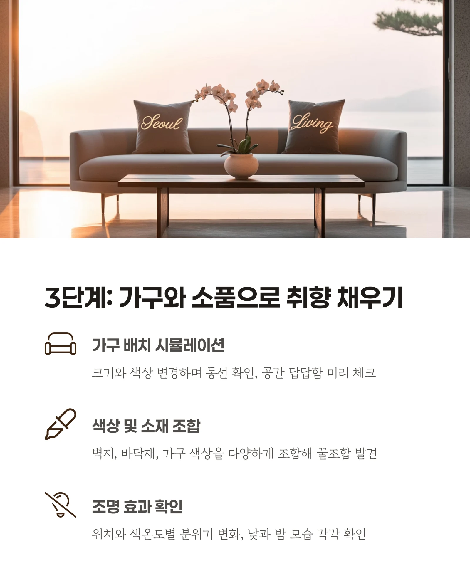 3단계: 가구와 소품으로 취향 채우기 🛋️