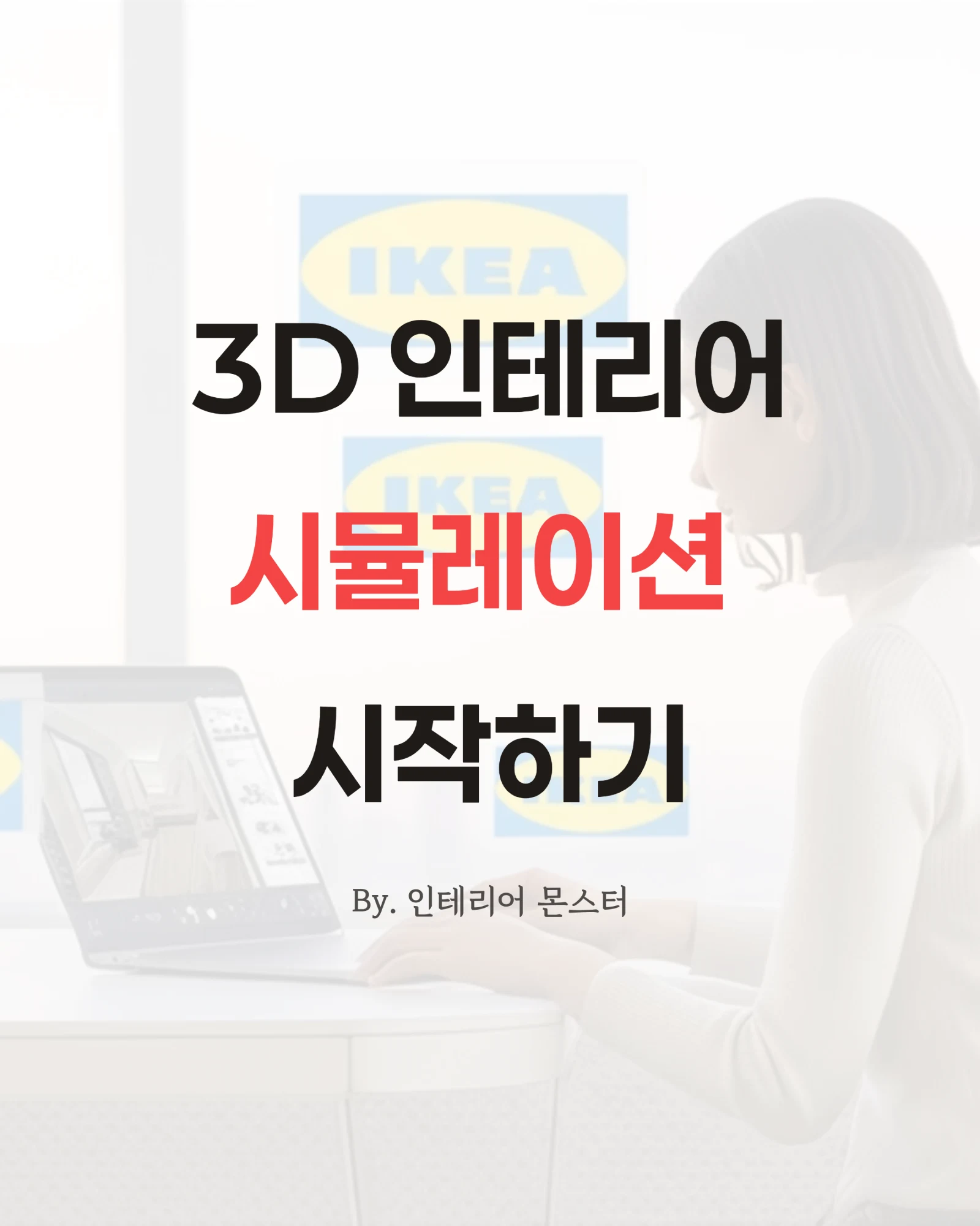 노트북으로 3D 인테리어 시뮬레이션을 시작하는 여성을 보여주는 이미지