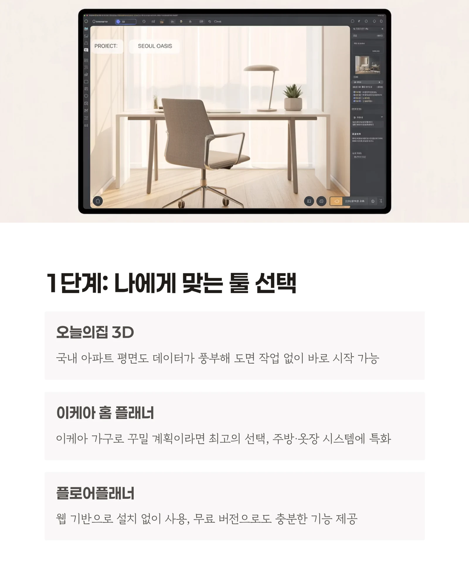 1. 툴 선택: 오늘의집, 이케아 등 목적에 맞는 툴 고르기