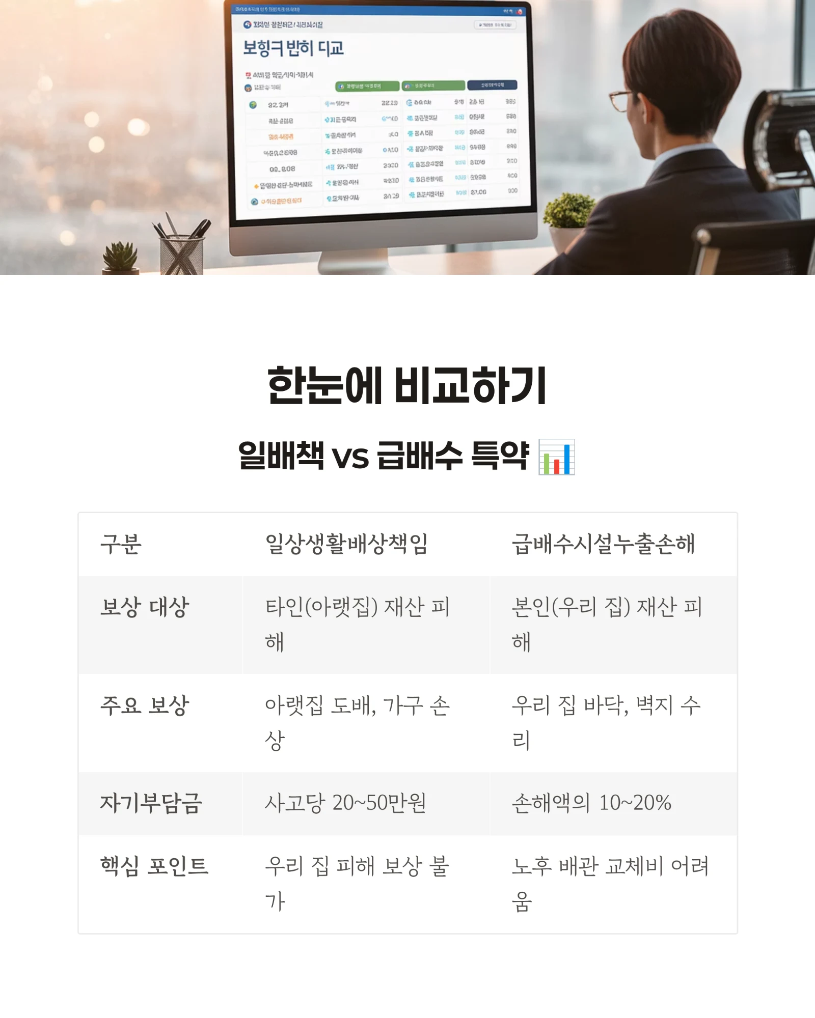 3. 한눈에 비교하기: 일배책 vs 급배수 특약 📊