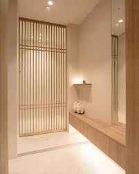 전통 창살무늬를 현대적으로 재해석한 간살 중문은 재팬디(Japandi) 스타일이나 미니멀 인테리어에 완벽한 조화를 이룹니다.