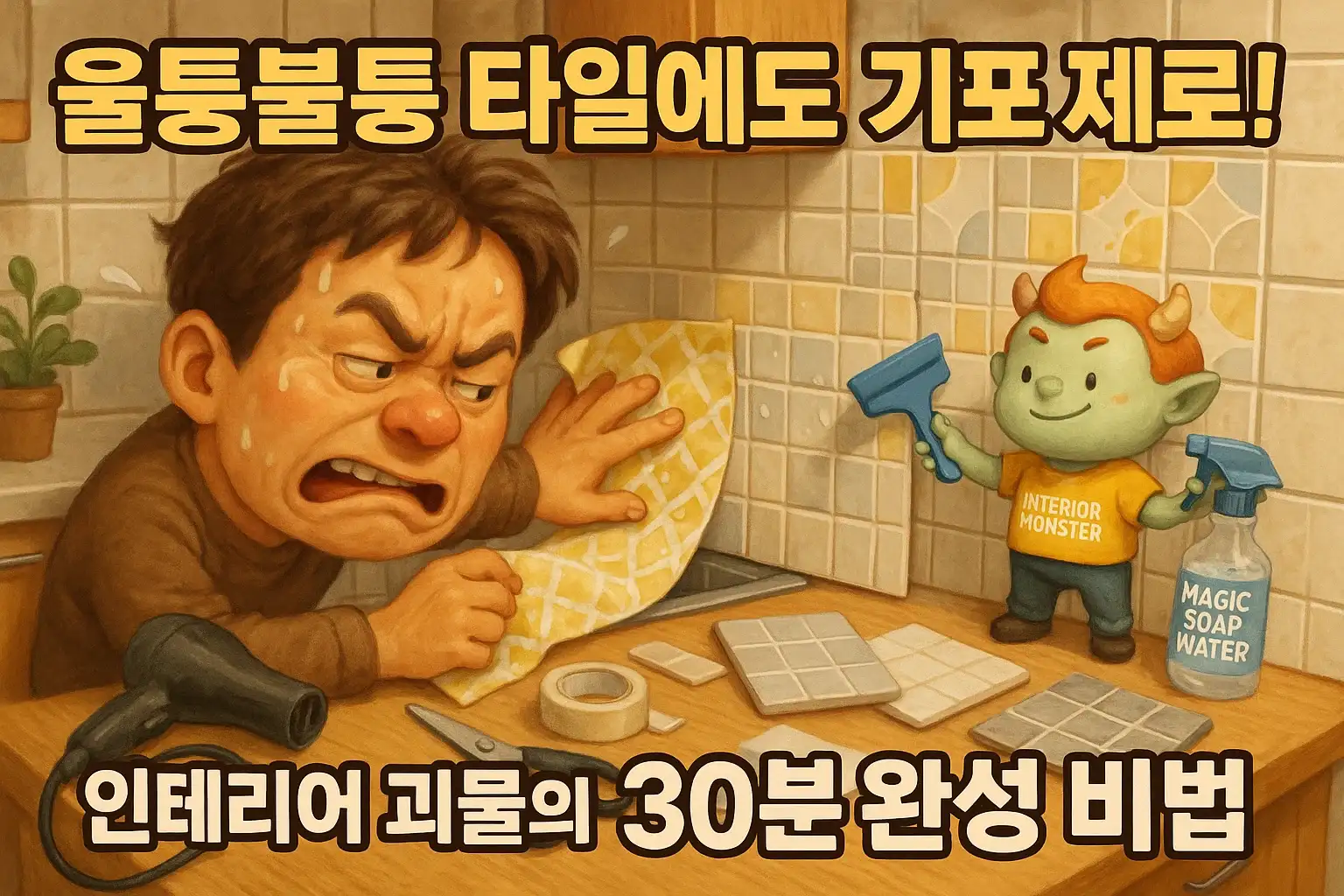 저도 압니다. 울퉁불퉁한 타일 위에 시트지를 붙이다 몇 번이나 떼었다 다시 붙이며 깊은 좌절감을 맛보셨을 거예요. 저 역시 '기포 지옥'과 '비뚤어진 시트지' 앞에서 수없이 무릎 꿇었던 과거가 있거든요.