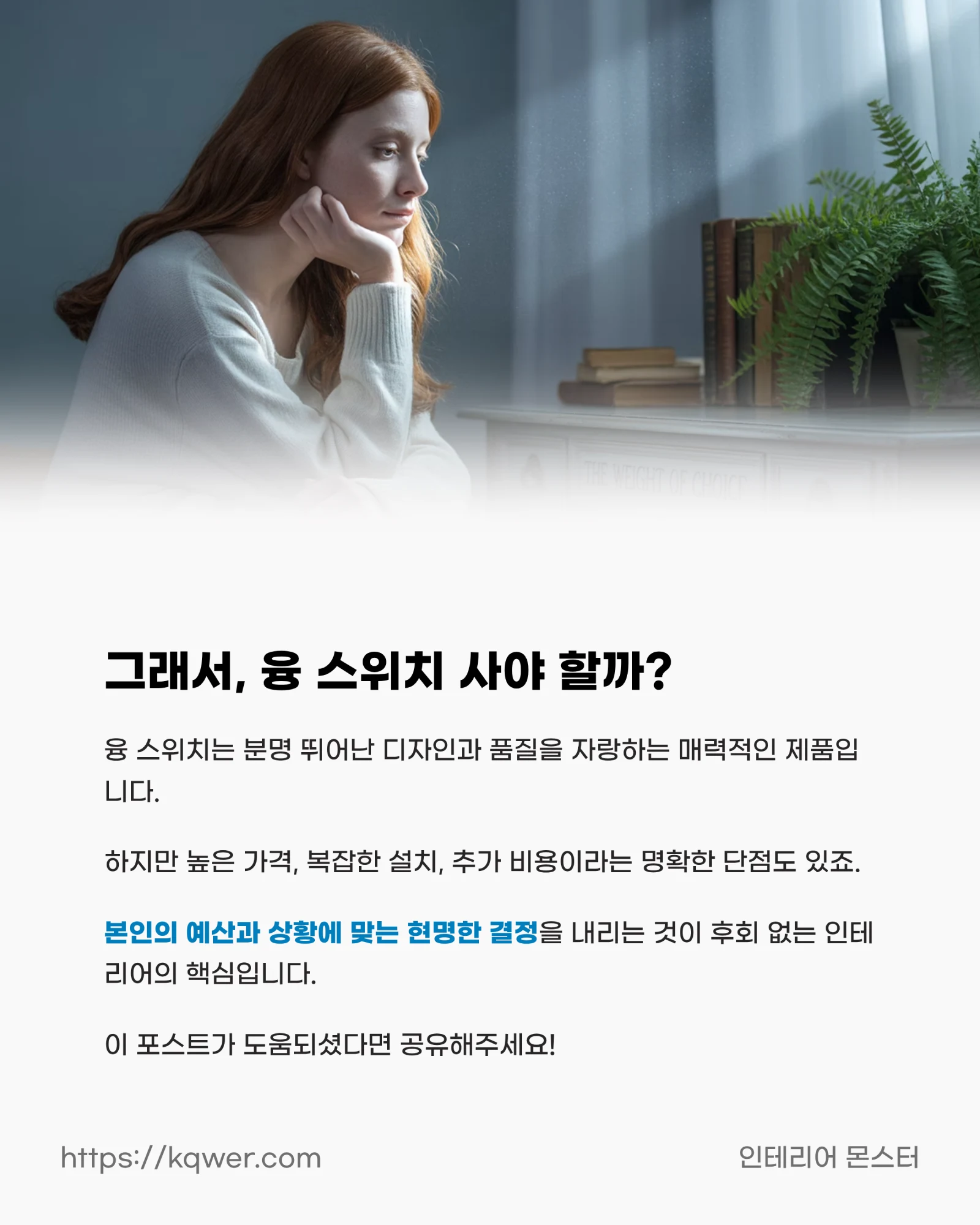 하지만 동시에 높은 가격, 복잡한 설치 과정, 추가 비용이라는 명확한 단점을 가지고 있죠. 무작정 로망을 쫓기보다는 오늘 제가 알려드린 여러 현실적인 문제들을 충분히 검토하고, 본인의 예산과 상황에 맞는 현명한 결정을 내리는 것이야말로 후회 없는 인테리어의 핵심이라는 점, 꼭 기억해 주세요.