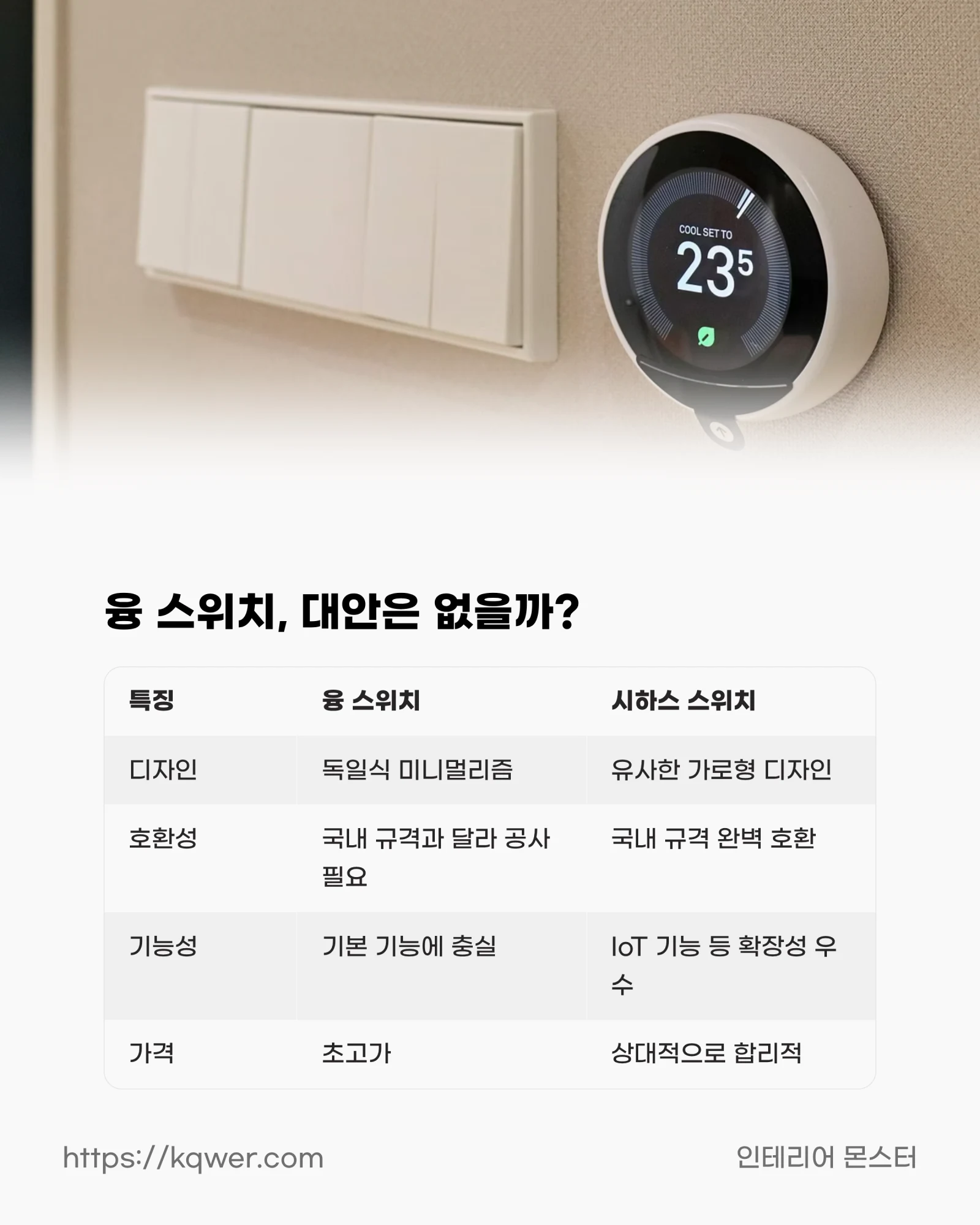 일반적인 스위치는 그나마 낫지만, 온도 조절이나 IoT 기능이 연동된 특수 제품의 경우 국내 배선 시스템과 호환되지 않는 경우가 종종 있습니다.