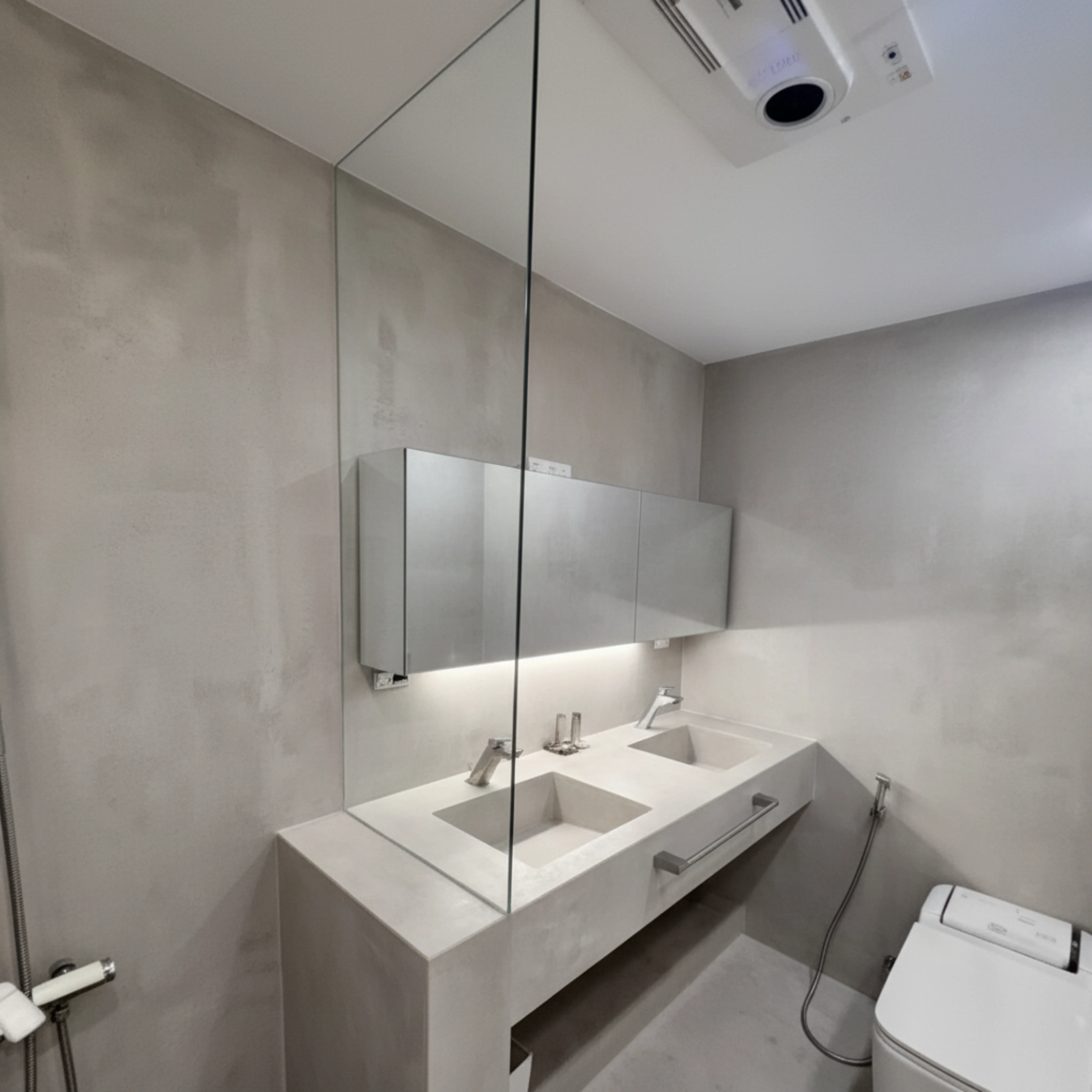 카운터 세면대보다 훨씬 저렴하고, 타일처럼 매지 라인 없이 깔끔하게 시공할 수 있다는 장점이 있습니다. 시각적으로도 간결하고 관리도 수월한 편이죠.