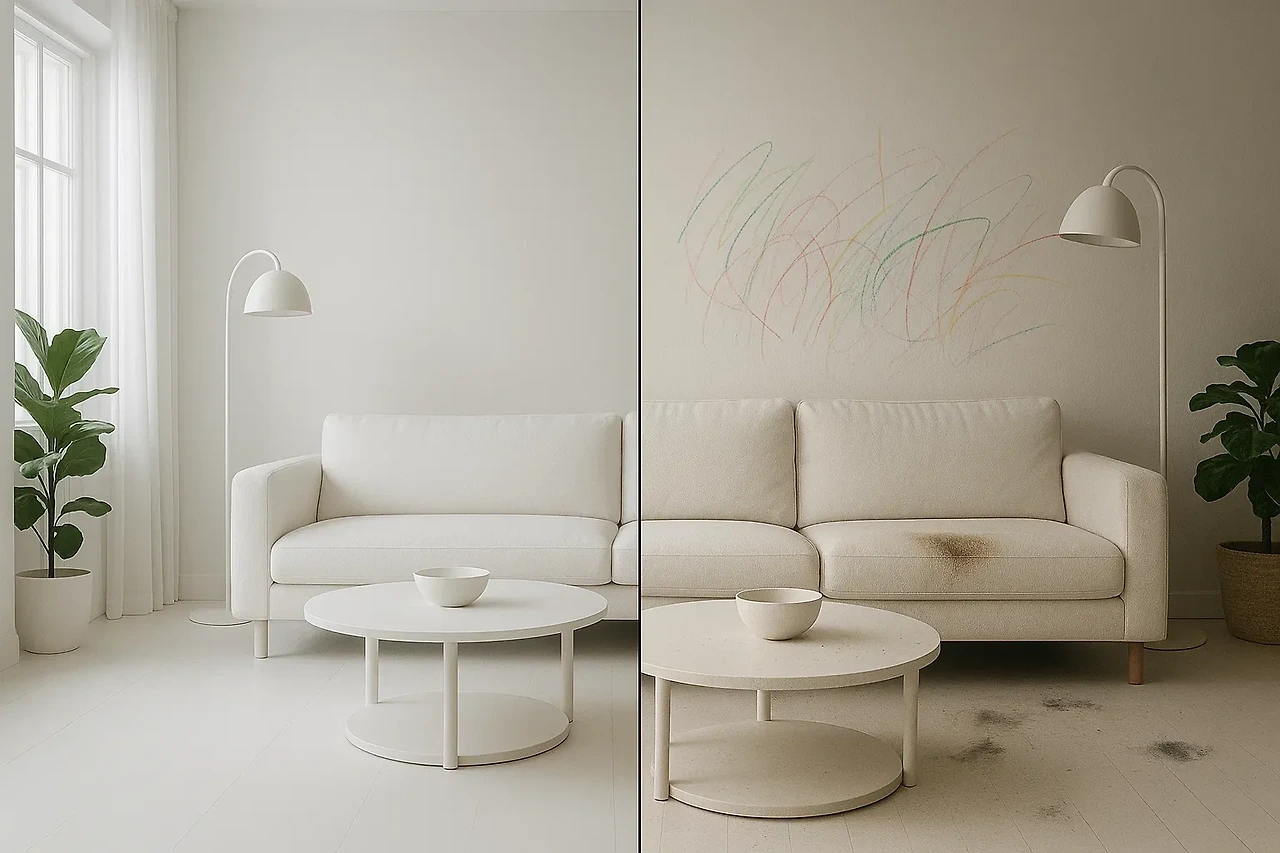특히 아이가 있는 집이나, 청소에 많은 시간을 쏟기 힘든 분들께 무광 올화이트 인테리어는 재앙이 될 수 있습니다. 손때, 먼지, 음식물 자국이 너무나도 선명하게 보여서 하루 종일 걸레를 손에서 놓지 못하게 될 수도 있거든요. 이건 단순한 약점을 넘어, 삶의 질을 위협하는 요소가 될 수 있습니다.