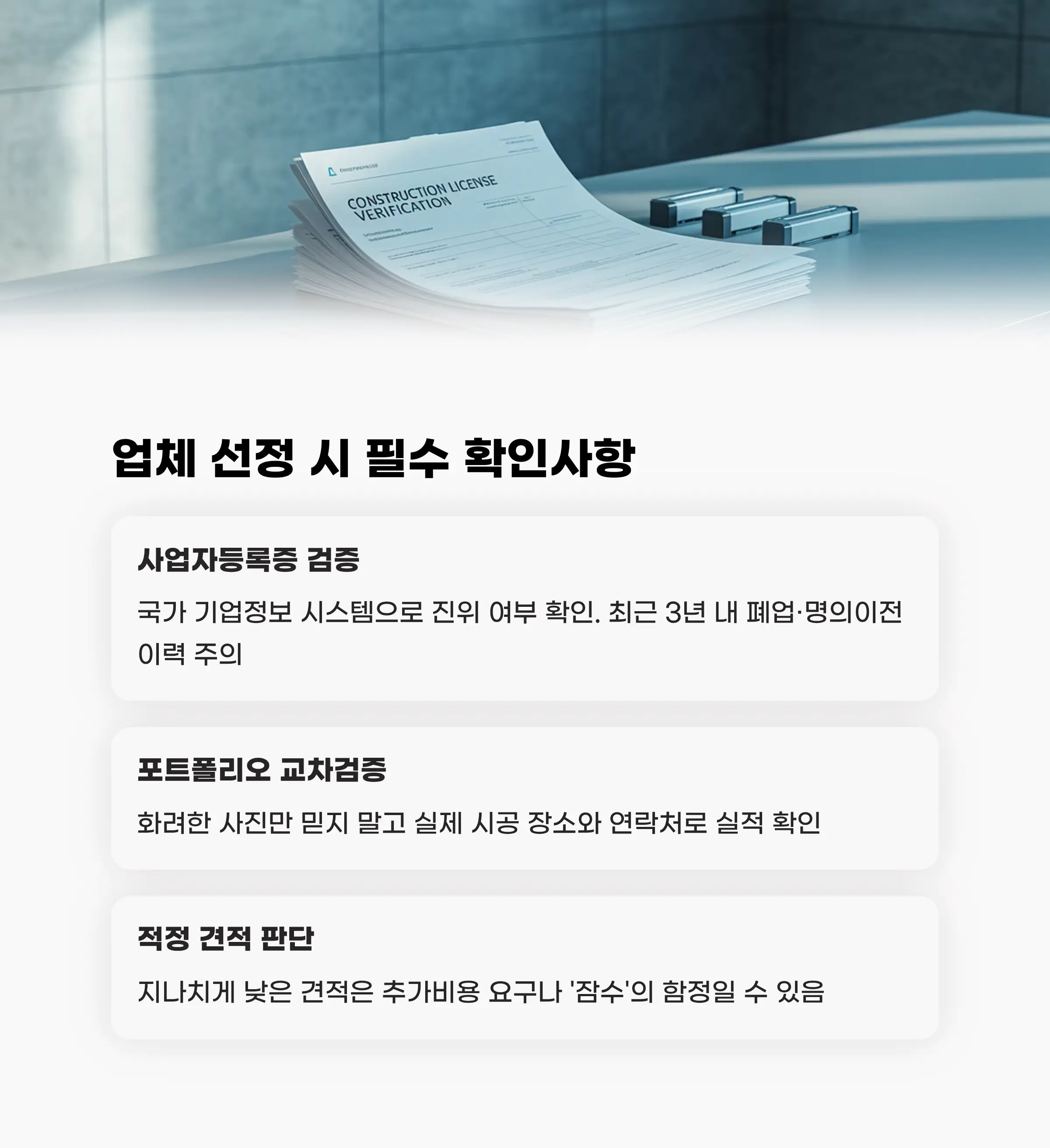 업체 선정 시 반드시 확인해야 할 핵심 사항들입니다.