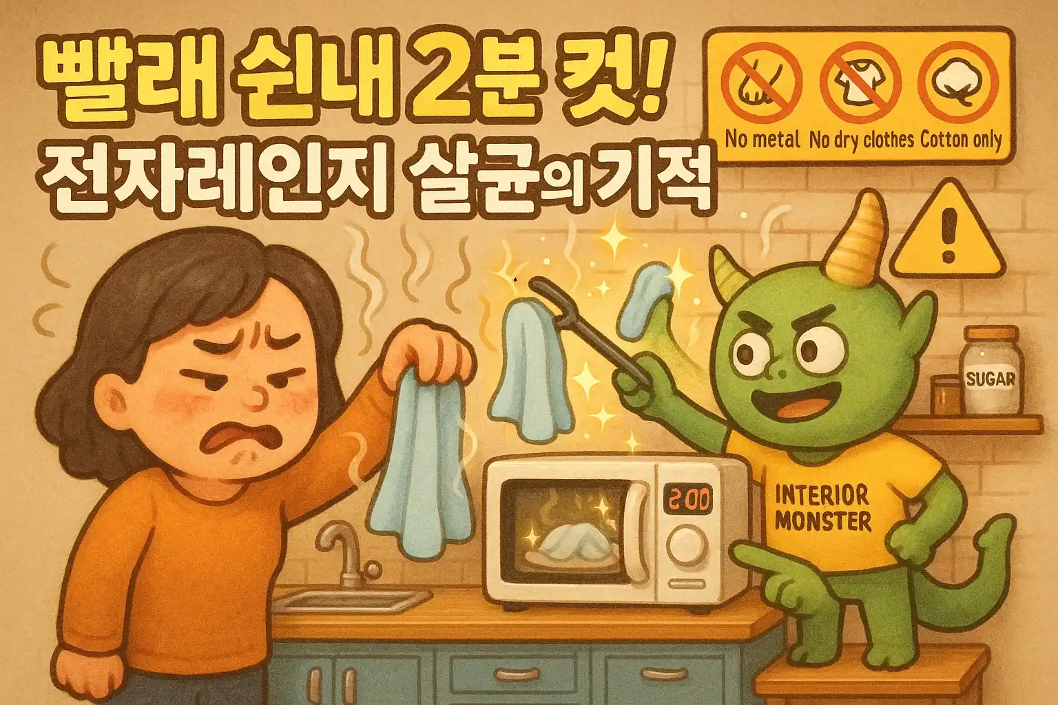 몬스터의 2분 레시피: 장마철 전자레인지로 빨래 냄새 완전히 제거하는 방법