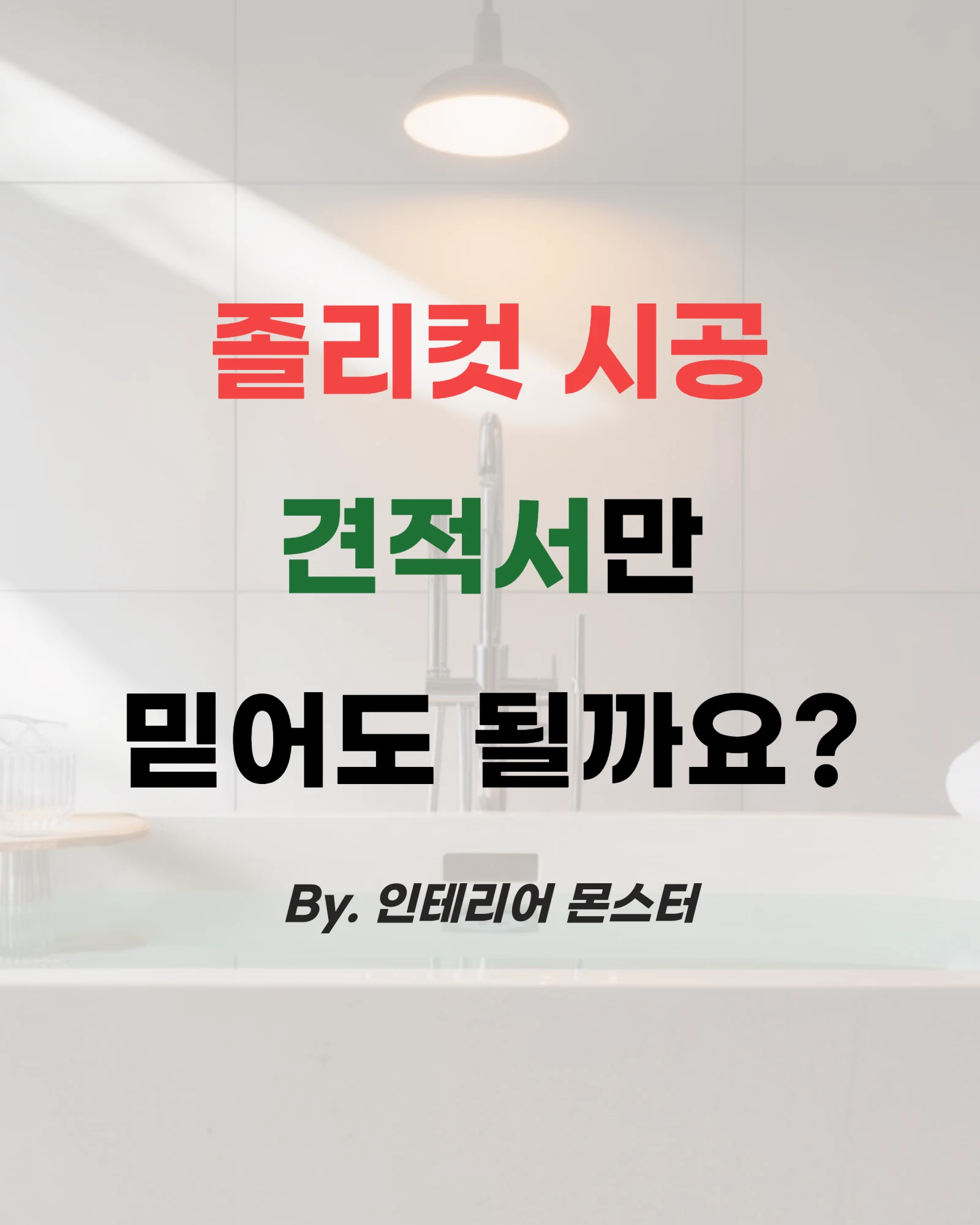 졸리컷 시공, 견적서만 믿어도 될까요? 라는 문구가 적힌 깔끔한 욕실 이미지