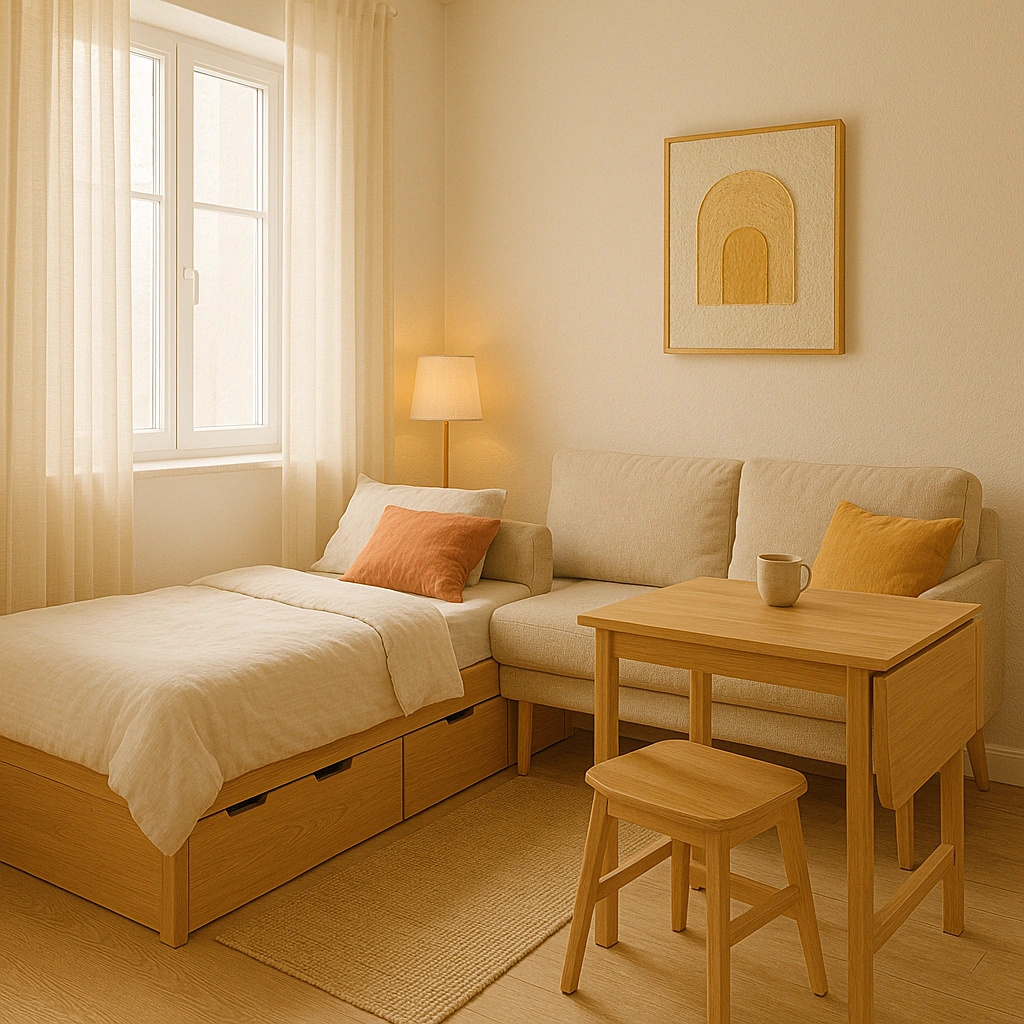 좁은 공간에서는 가구 하나하나가 제 역할을 톡톡히 해줘야 합니다. 요즘은 정말 아이디어 좋은 다기능 가구들이 많더라고요. 예를 들면 아래 공간에 서랍이 달린 침대 프레임이나, 낮에는 소파였다가 밤에는 침대로 변신하는 소파베드 같은 것들이죠.