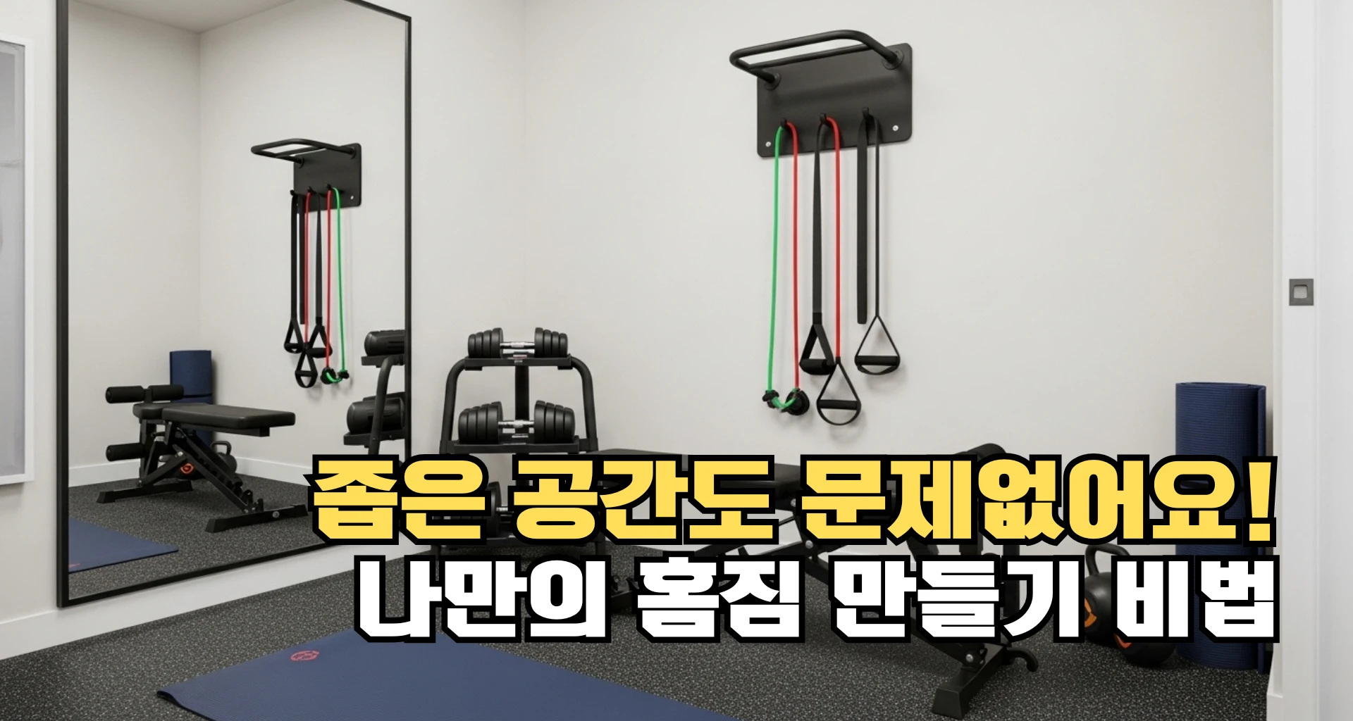 - 4. 벽면 공간, 200% 활용하기: 바닥 공간이 부족하다면 벽면을 적극적으로 활용해보세요. 벽걸이형 폴딩 운동기구나, 튜빙밴드나 요가매트 등을 걸어둘 수 있는 월 마운트 수납 시스템을 설치하면 공간 효율을 극대화할 수 있습니다.