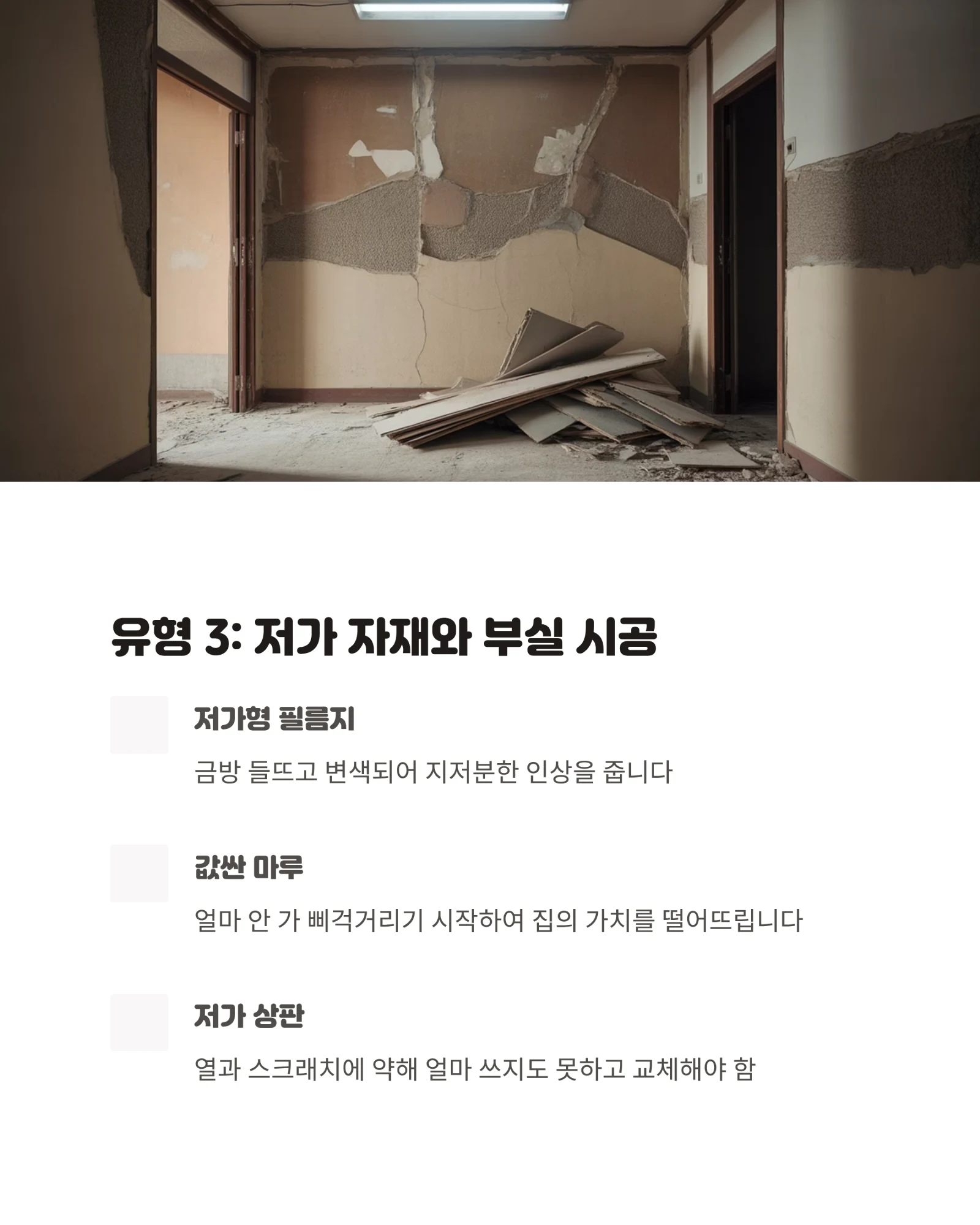 유형 3: 싼 게 비지떡! 저가 자재와 부실 시공 📉