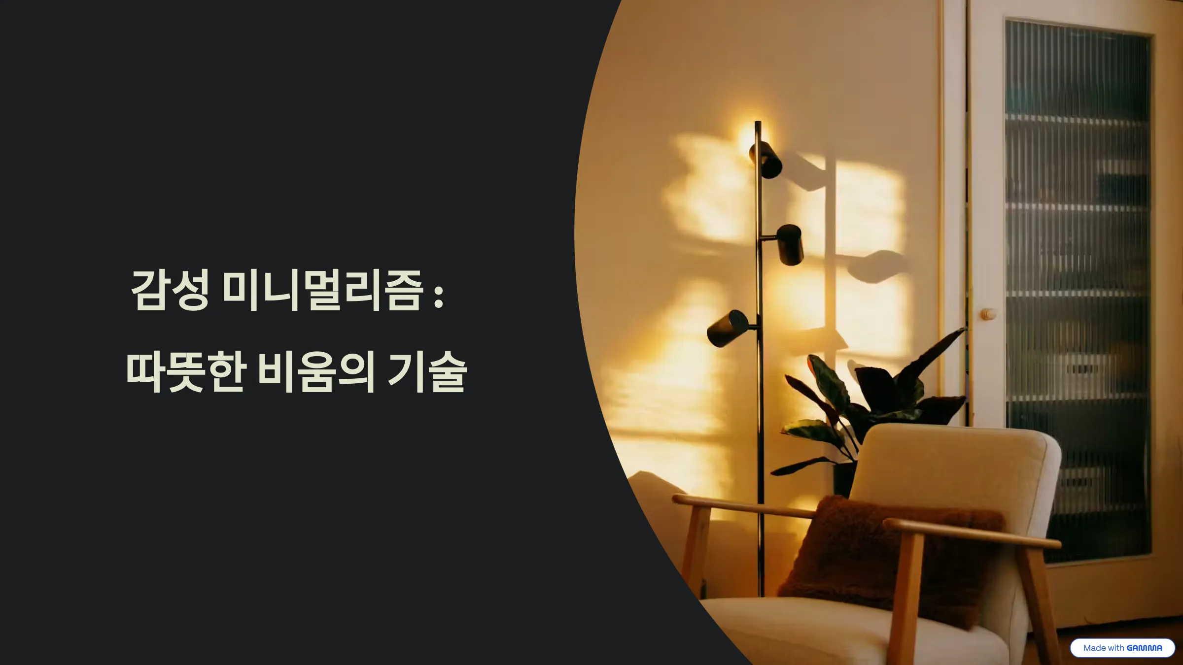 아무리 예쁜 가구와 소품으로 채워도 조명이 받쳐주지 않으면 소용없어요. 감성 미니멀리즘에서 조명은 단순히 공간을 밝히는 기능을 넘어, 분위기를 만들고 감성을 불어넣는 가장 중요한 요소입니다.