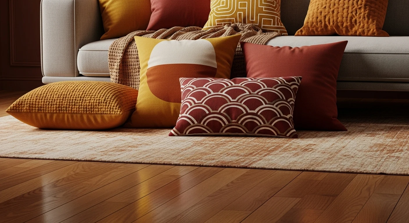 특히 러그나 카펫과 함께 레이어드하면 더욱 감각적인 공간이 완성되어요. 차가운 바닥에는 난색 계열의 톤 다운된 러그를 깔고, 쿠션으로 포인트를 주면 완벽한 가을 인테리어가 되죠.
