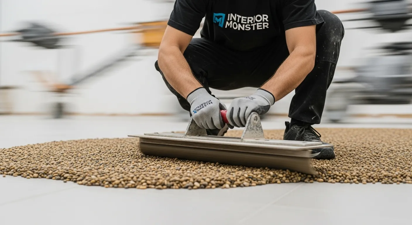 하지만 그냥 콩자갈이 아니었습니다. "단, 실내와 실외는 다른 생명체처럼 다뤄야 합니다. 햇빛을 직접 받는 실외 테라스에는 황변 현상이 없는 UV코팅 우레탄 바인더를, 내구성과 강도가 중요한 실내에는 고경질 에폭시 바인더를 사용할 겁니다. 이게 바로 프로와 아마추어를 가르는 한 끗 차이죠."