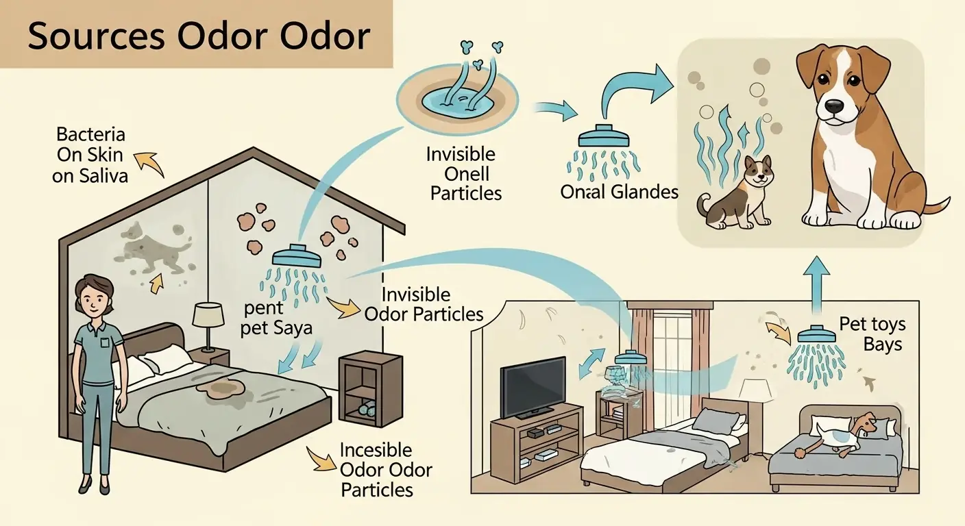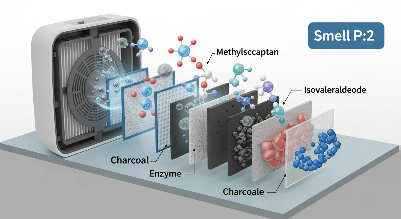 일반 공기청정기가 미세먼지 제거에 집중한다면, 펫케어 제품은 냄새 잡는 데 특화된 필터 시스템을 갖추고 있어요. 강아지 냄새의 주범으로 꼽히는 성분들이 있는데, 바로 계란 썩는 냄새를 내는 '메틸 메르캅탄', 꼬릿한 발 냄새 같은 '이소발레르알데히드', 그리고 지방산 기반의 체취인 '노나날'이에요.