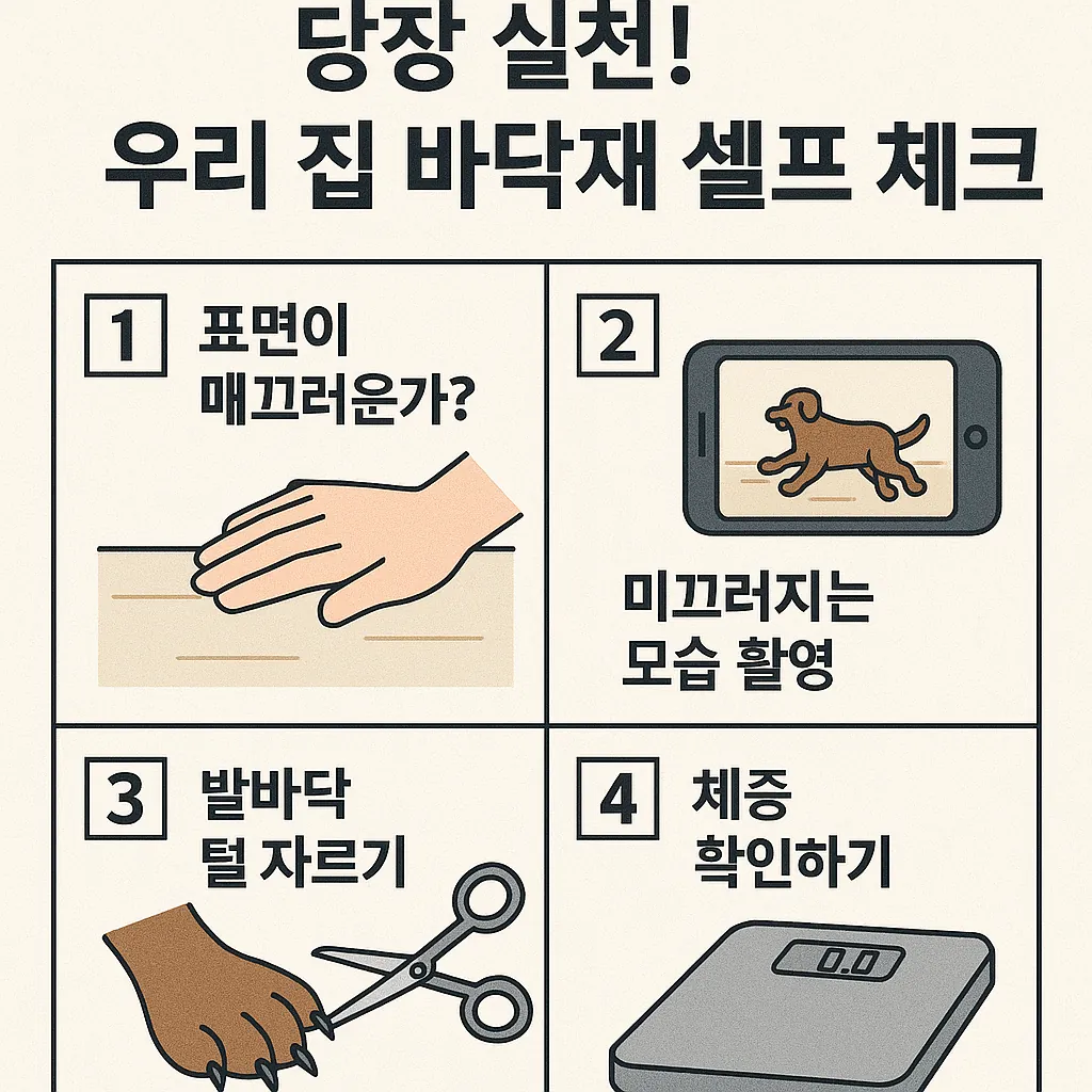 “미끄럼 저항성이 낮은 바닥재는 보행 안전성을 현저히 저하시킬 수 있으며, 특히 반려동물이나 노약자에게는 낙상 사고의 주요 원인이 됩니다.”