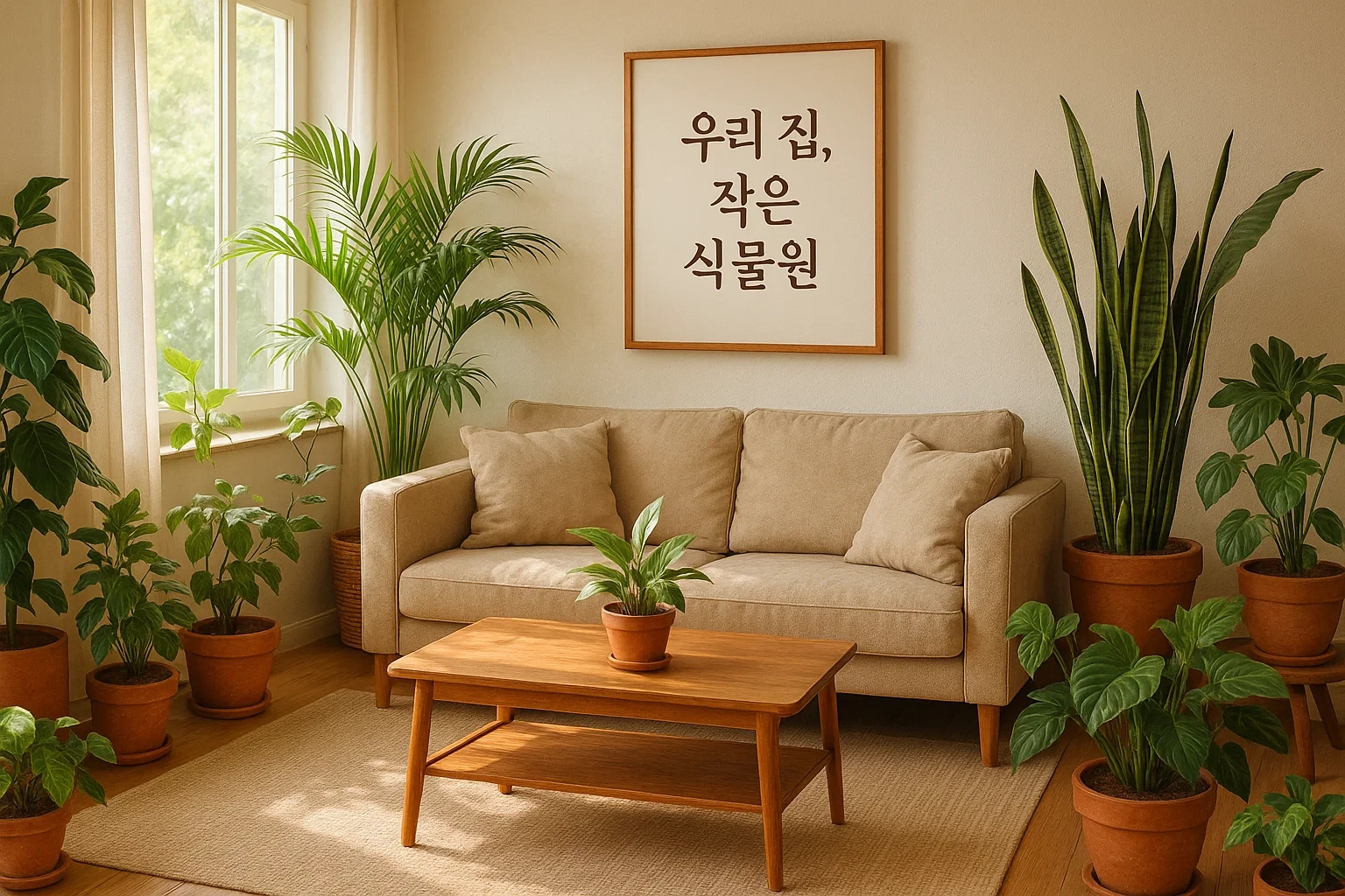 거실은 집의 얼굴이죠! 가족 모두를 위한 공간인 만큼 공기정화 능력과 풍수까지 고려하면 좋습니다.