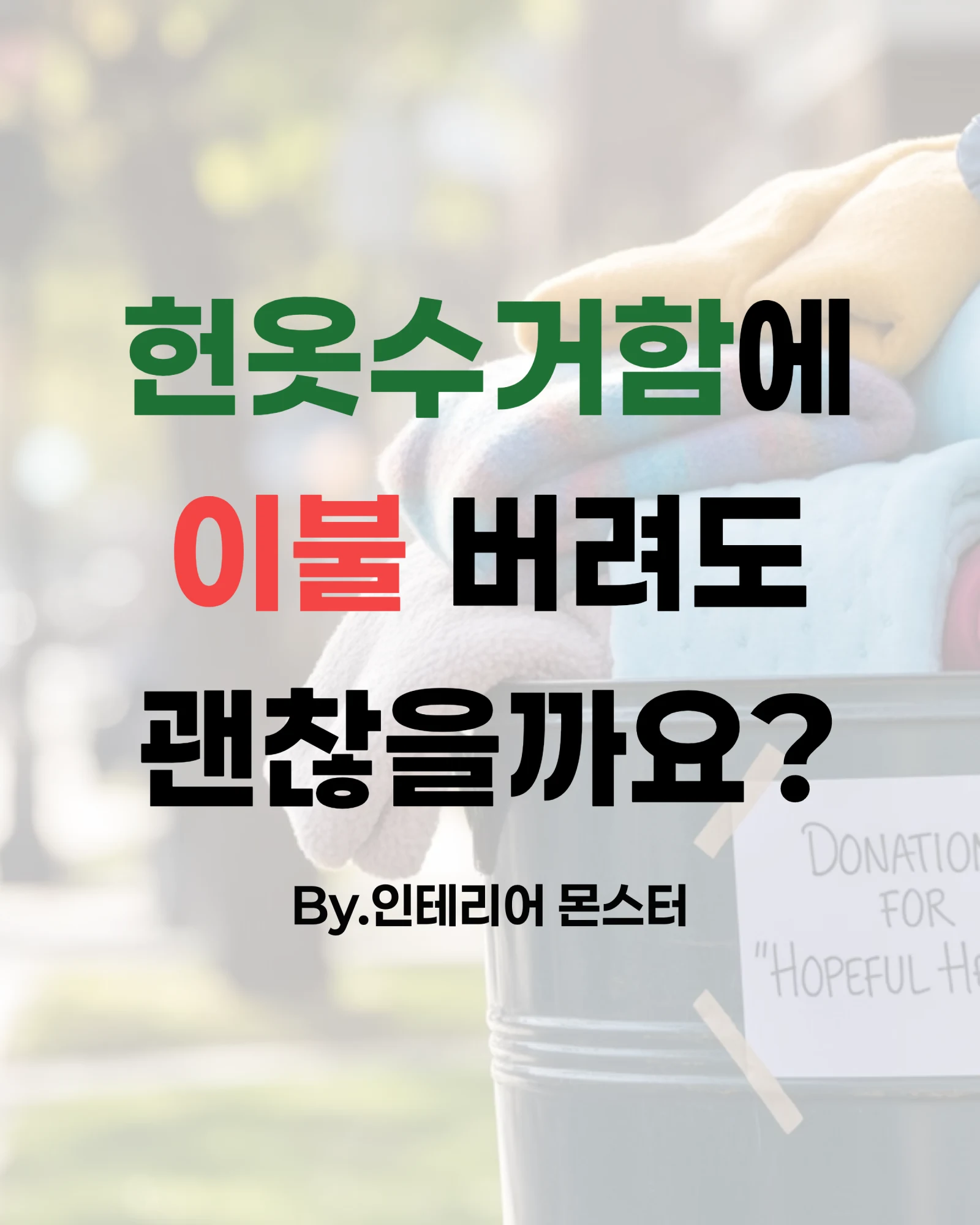 '저기 보이는 헌옷수거함에 쏙 넣으면 편할 텐데...' 하고 생각한 적 다들 있으실 거예요. 저도 예전에 두꺼운 솜이불을 무심코 넣었다가 나중에 안 된다는 사실을 알고 다시 꺼내느라 진땀 뺐던 기억이 있네요. 😊