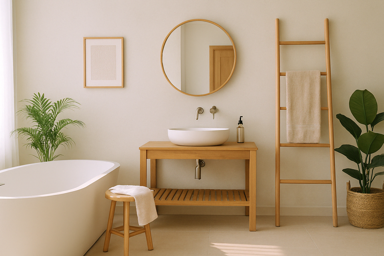 샤워 커튼, 러그, 수건까지도 통일된 컬러나 패턴으로 맞춰주면 훨씬 세련돼 보입니다. 특히 뉴트럴톤이나 우드 컬러를 사용하면 자연스럽고 아늑한 느낌을 줄 수 있어요.