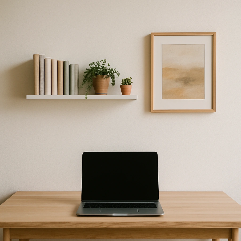 - 정돈된 배경 연출: 책상 뒤편 벽을 깔끔하게 유지하는 것이 기본입니다. 벽 선반을 활용해 책이나 소품을 정돈하고, 좋아하는 액자나 작은 식물을 두어 포인트를 주는 것도 좋습니다. 배경은 결국 나를 보여주는 또 다른 창이죠. 좋아하는 오브제나 그림을 두어 개성을 드러내는 것도 좋은 방법이라고 생각해요. 중요한 것은 '과하지 않게', '정돈된' 느낌을 주는 것입니다.
