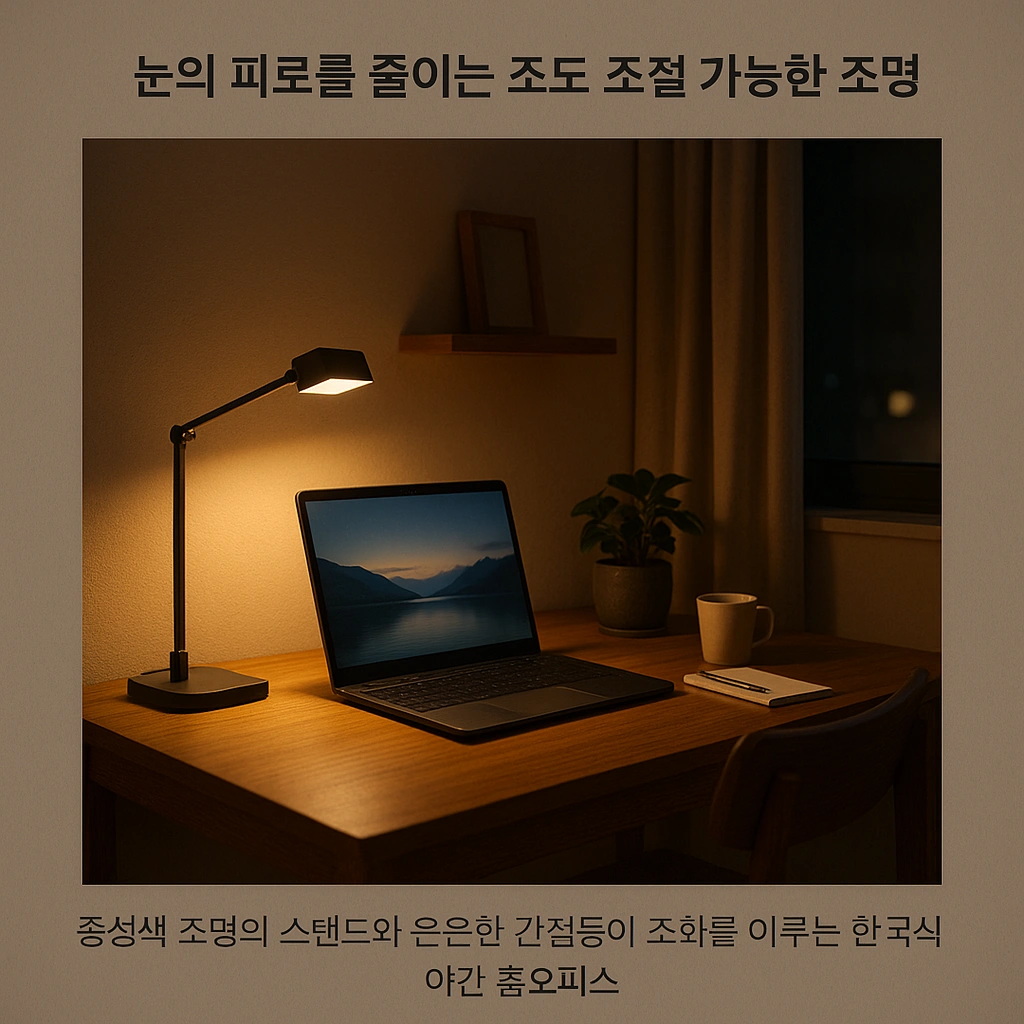 - 조도 조절: 가능하다면 밝기 조절(디밍) 기능이 있는 조명을 선택하세요. 업무 내용이나 시간대에 따라 밝기를 조절하면 눈의 부담을 줄이고 최적의 집중 환경을 만들 수 있습니다.