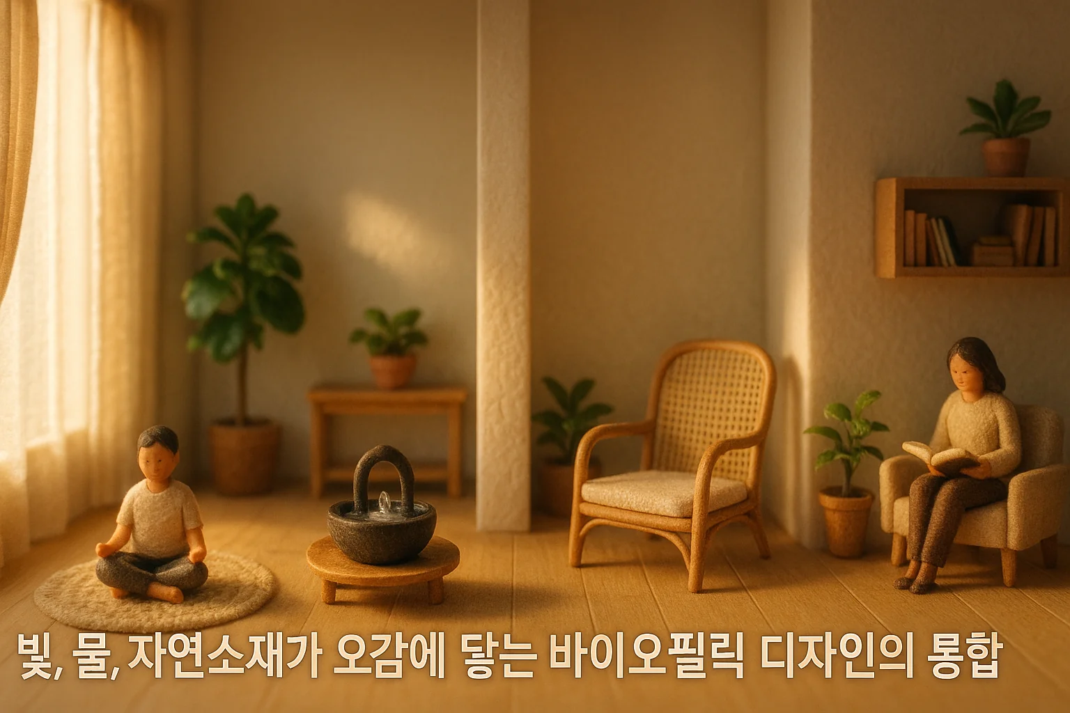 우리 인간이 본능적으로 자연을 그리워하는 마음, '바이오필리아'를 모든 감각으로 채워주는 거죠. 예를 들어, 플랜테리어에서 빛은 식물의 생존 조건이지만, 바이오필릭 디자인에서 빛은 시간에 따라 변하는 그림자, 커튼을 통해 부드럽게 들어오는 햇살처럼 우리의 생체리듬과 기분을 조절하는 중요한 요소가 됩니다.