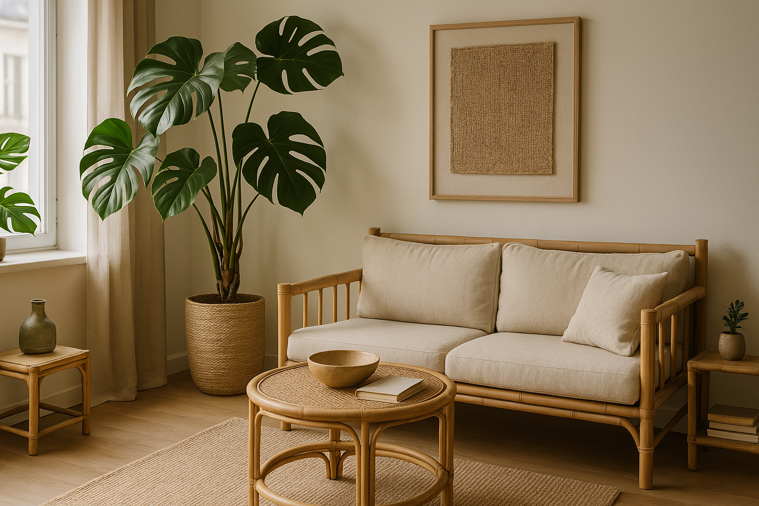 - 바이오필릭 디자인: 실내에 식물, 자연 소재, 빛을 적극적으로 활용해 스트레스를 줄이고 집중력을 향상시키는 스타일입니다. 예를 들어, 창가에 큰 잎의 몬스테라를 두고 간접 조명을 활용하면 자연 속에 있는 듯한 안정감을 느낄 수 있어요.