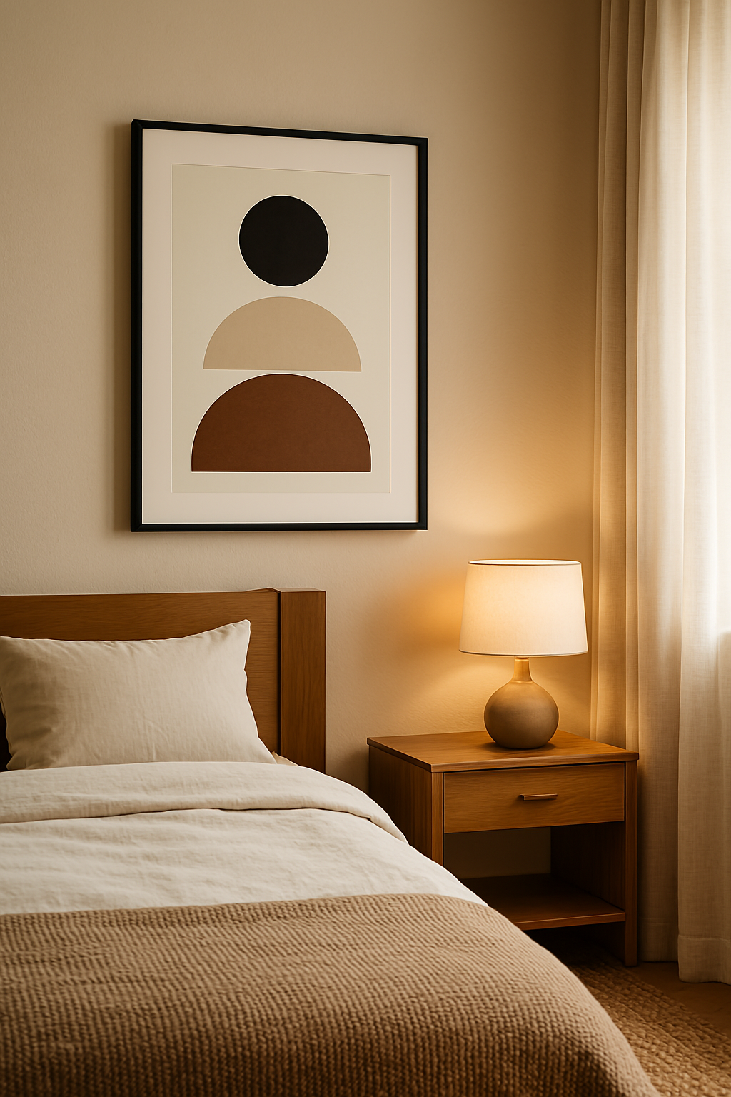 - 침실: 조도 낮은 조명 + 자연 소재 침구 + 포스터 1장 → 아늑함의 끝판왕. 특히 라탄 조명과 린넨 베딩 조합은 요즘 유행이에요.
