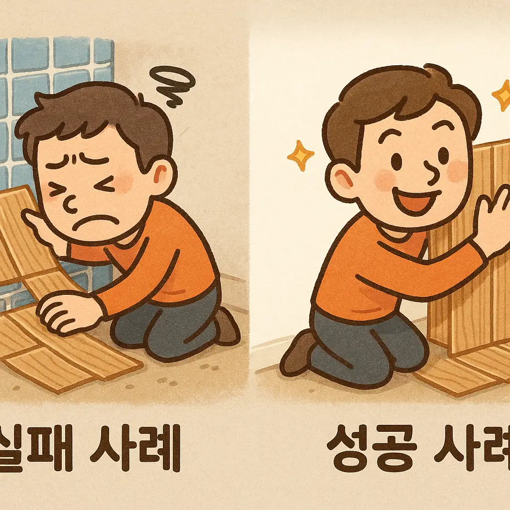 가장 큰 배신감을 느꼈던 건 '쉬움 타일' 시공이었어요. 20년 된 아파트의 촌스러운 파란색 타일 위에 붙였는데, 정렬은 엉망진창, 틈새는 쩍쩍 벌어지더군요. "누가 봐도 셀프로 한 거 티 나서 슬픔"이라는 후기에 '좋아요'를 누를 수밖에 없었죠.