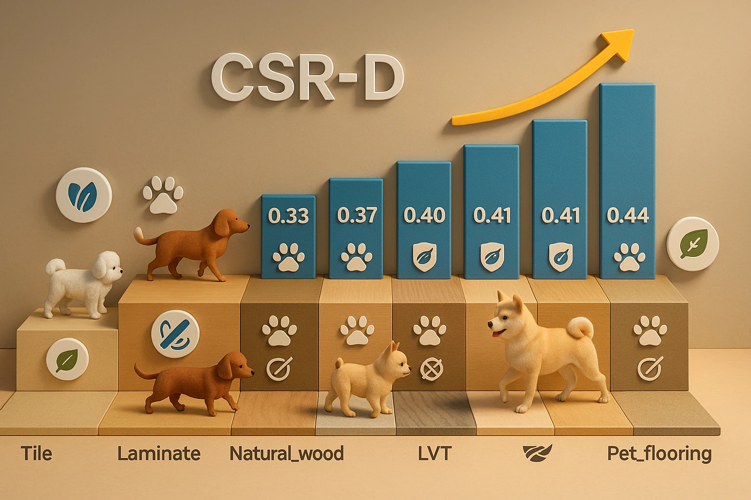 - 정형외과적 문제: 수의사들은 미끄러운 바닥재가 소형견에게 흔한 슬개골 탈구의 주요 후천적 원인이라고 일관되게 지적합니다. 이는 바닥재 선택 시 미끄럼 저항 계수(CSR-D) 값을 단순한 '기능'이 아닌, 반려동물의 건강과 직결된 '의학적 필수 요건'으로 간주해야 함을 의미합니다.