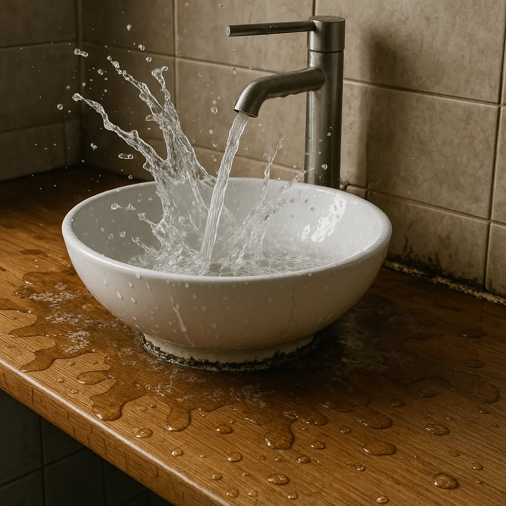 탑볼 세면대는 구조적으로 물이 튈 수밖에 없습니다. 세면대와 상판이 만나는 지점, 수전 주변 등 청소할 사각지대가 너무 많죠. 게다가 디자인을 위해 하부 수납장을 없애는 경우가 많아 칫솔, 치약, 각종 세안 용품을 둘 곳이 마땅치 않아 결국 너저분해지기 쉽습니다. 이는 명백한 탑볼 세면대 단점입니다.