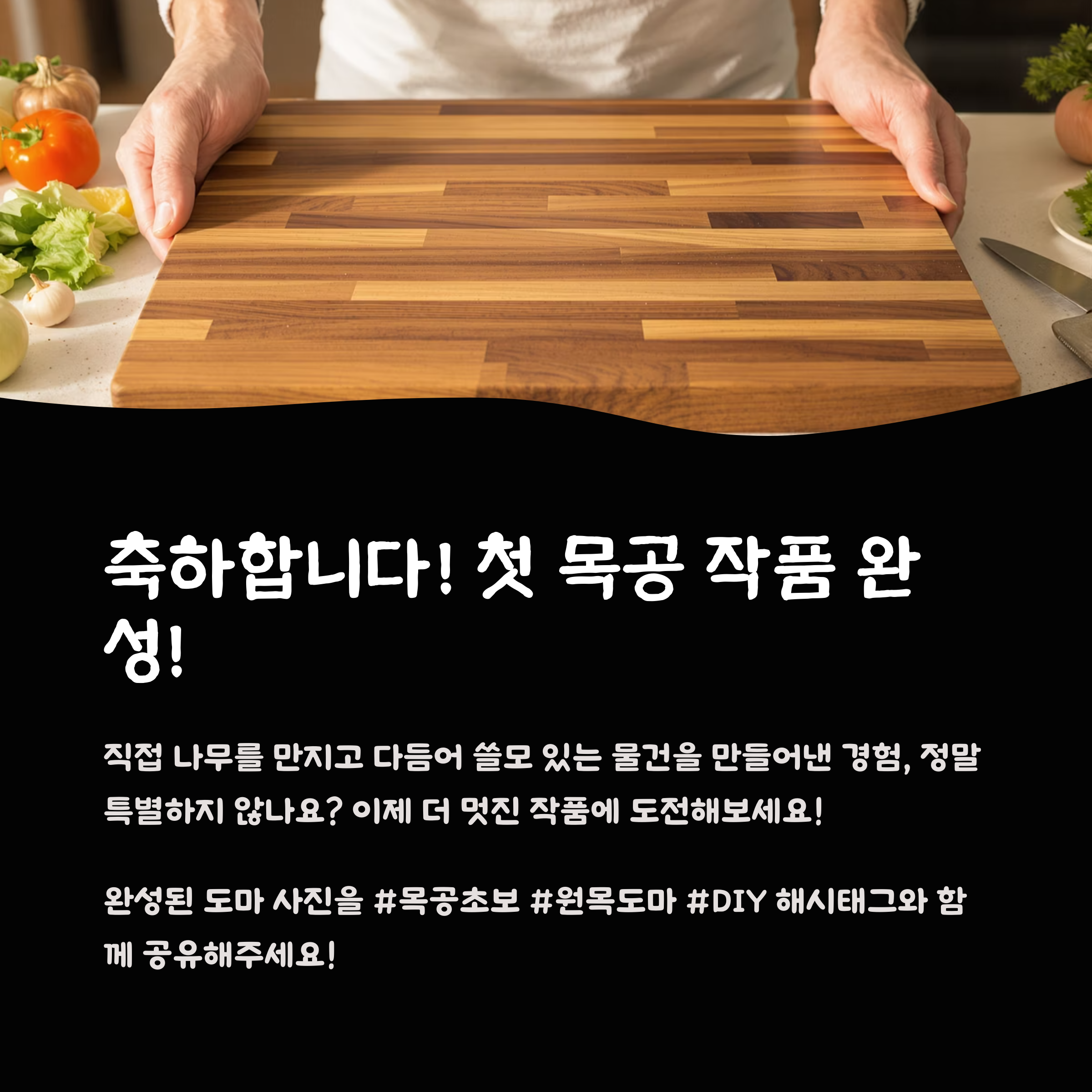 이제 직접 만든 도마를 주방에서 사용하며 뿌듯함을 느껴보세요. 이번 경험을 발판 삼아 다음엔 더 멋진 작품에 도전해 보시는 건 어떨까요? 목공의 세계는 넓고 즐거운 일들로 가득하답니다!